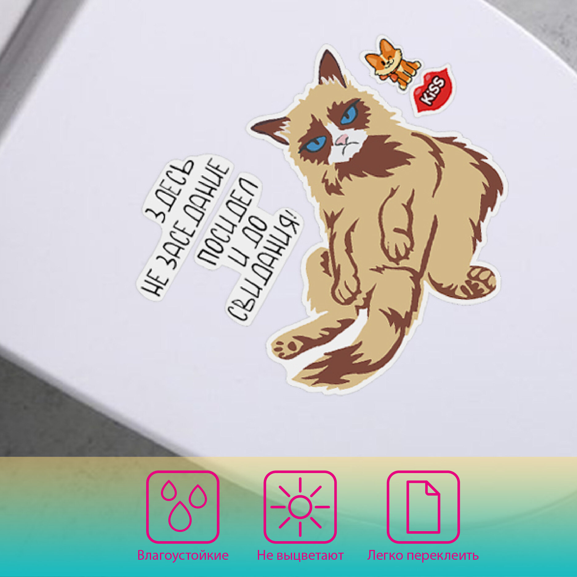 Наклейки с котом на холодильник, авто или унитаз - готовое решение для интерьера кот Здесь не заседание