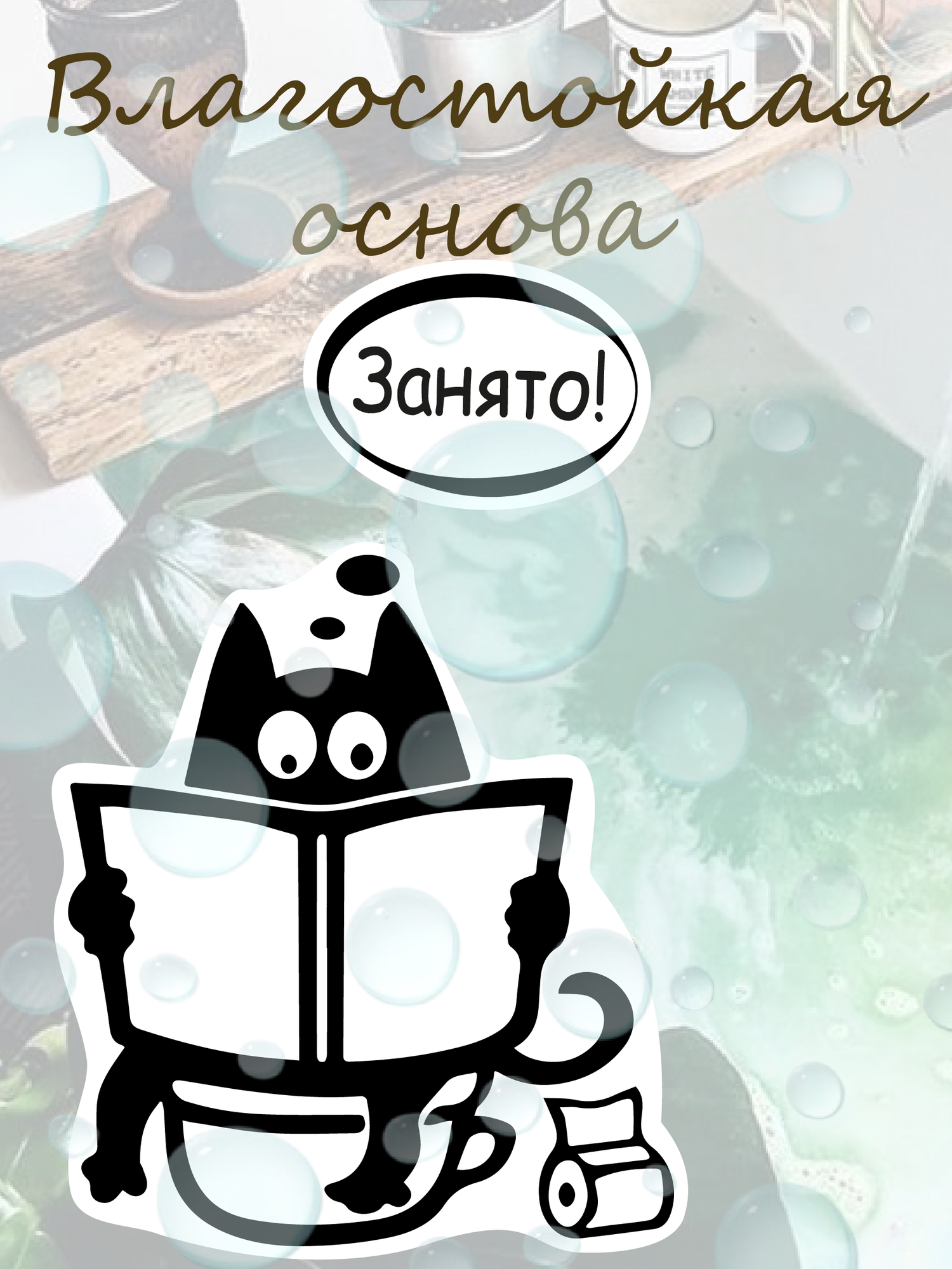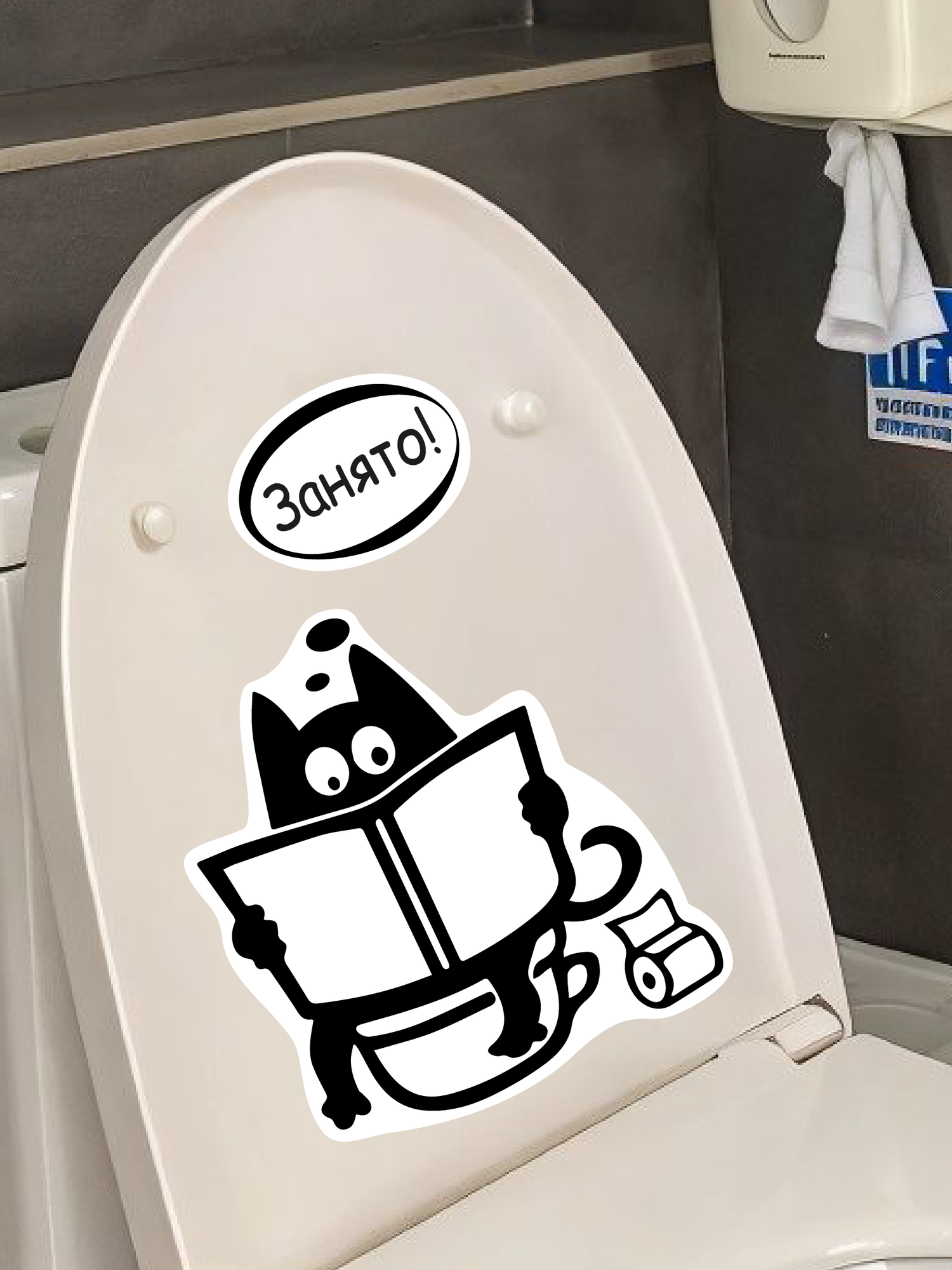 Купить Наклейки в туалет UND "Занято" на холодильник и дверь с котом, черные/белые, влагостойкие, термостойкие