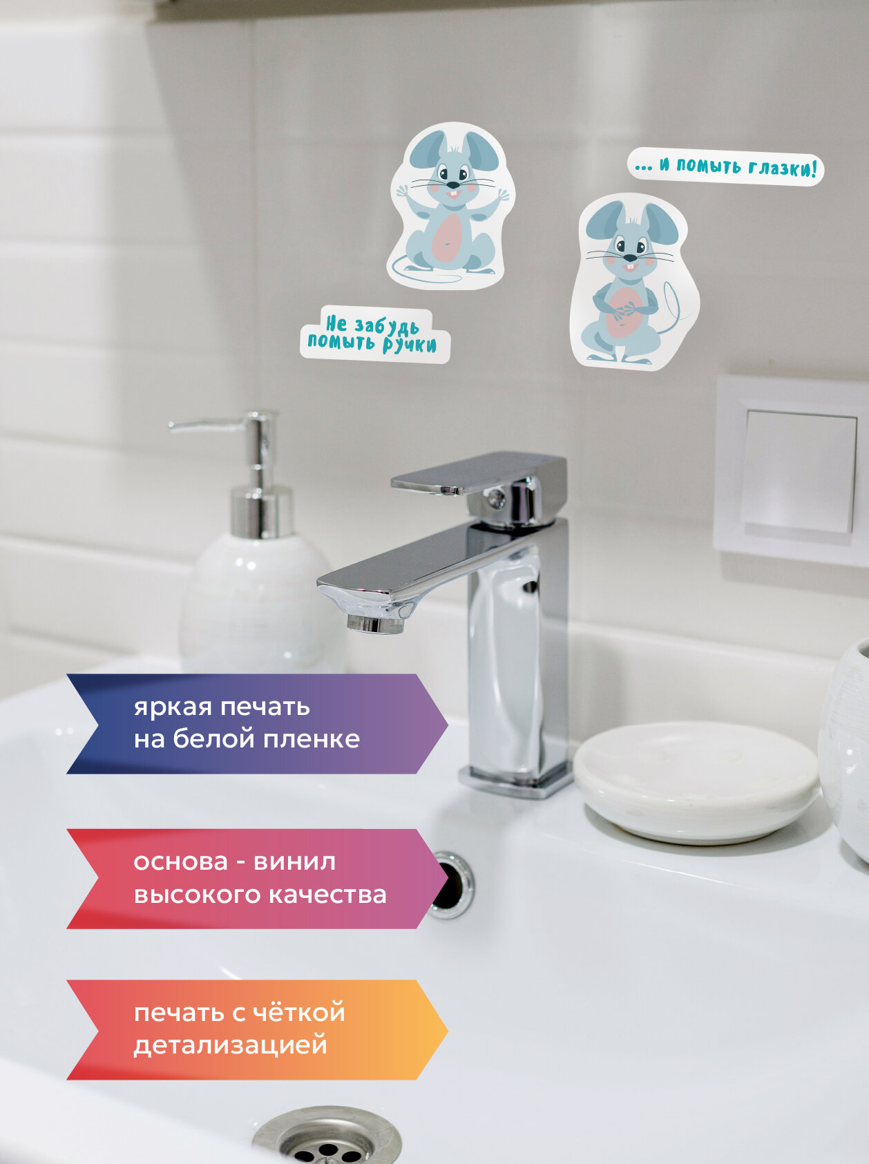 Наклейки с мышками парные напоминалка детям в ванной и туалете 2 штуки
