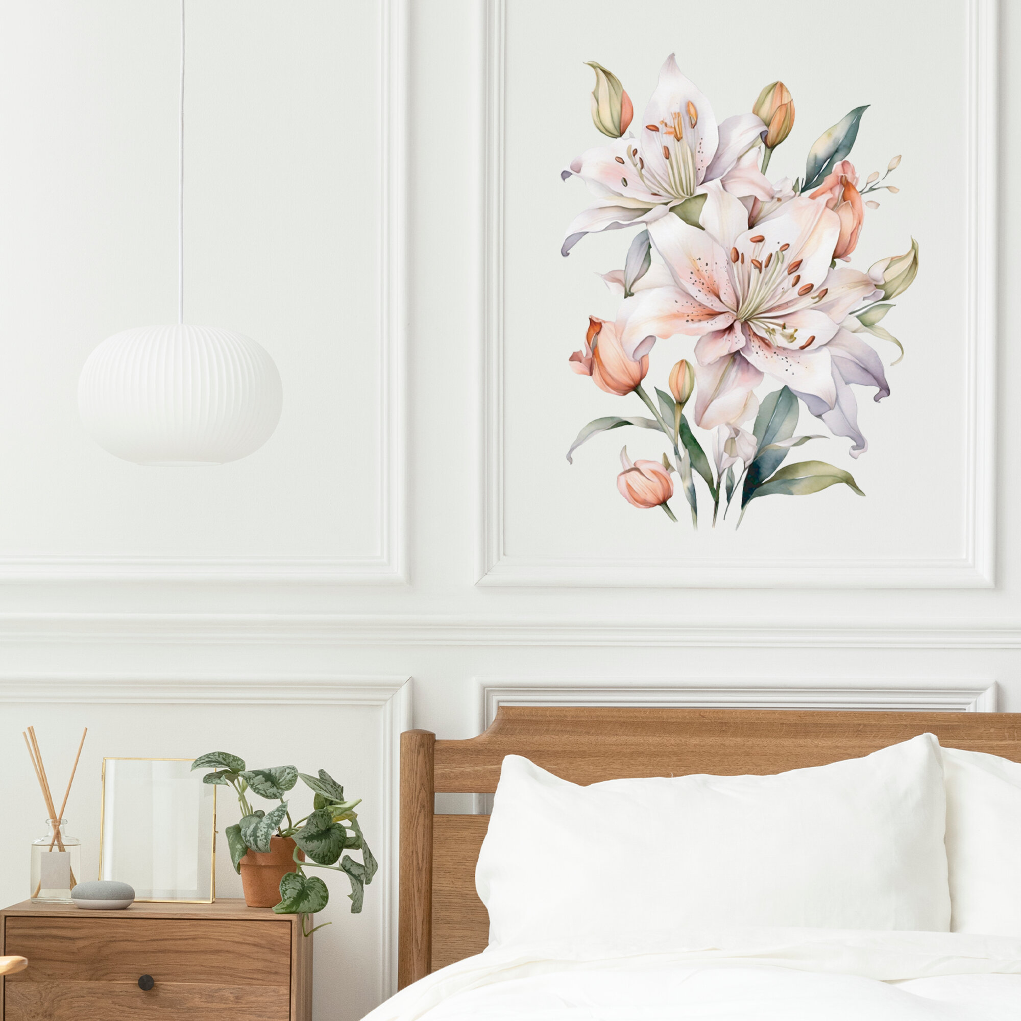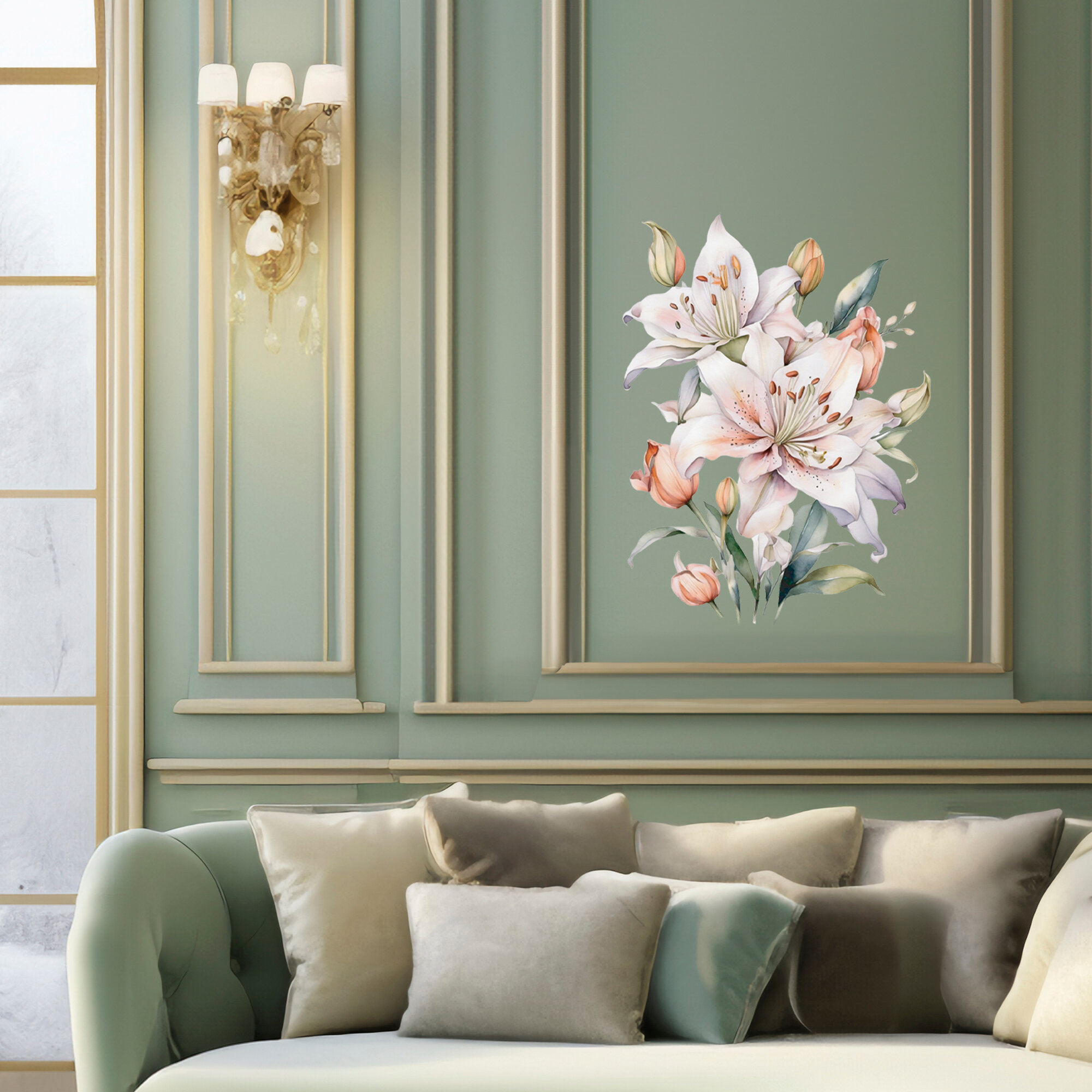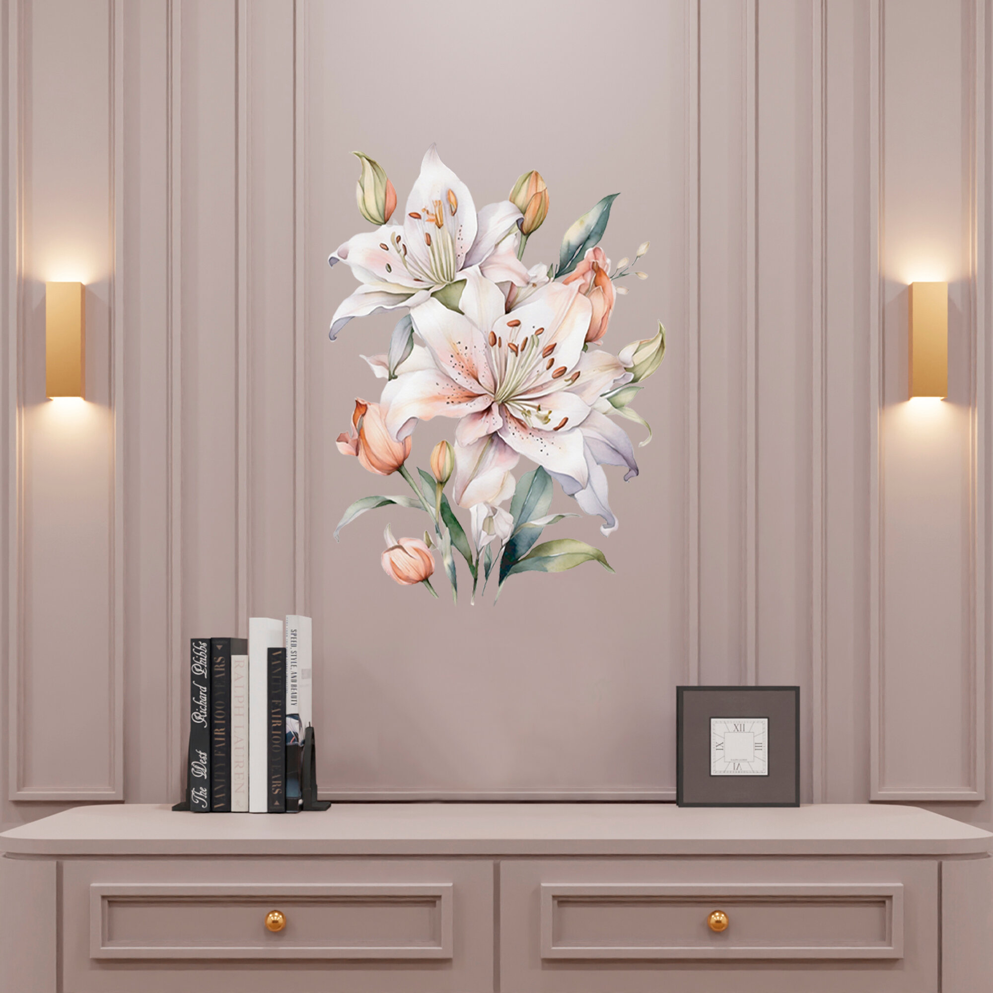 Интерьерная красивая наклейка на унитаз, на холодильник, на шкафчик, на дверь лилии