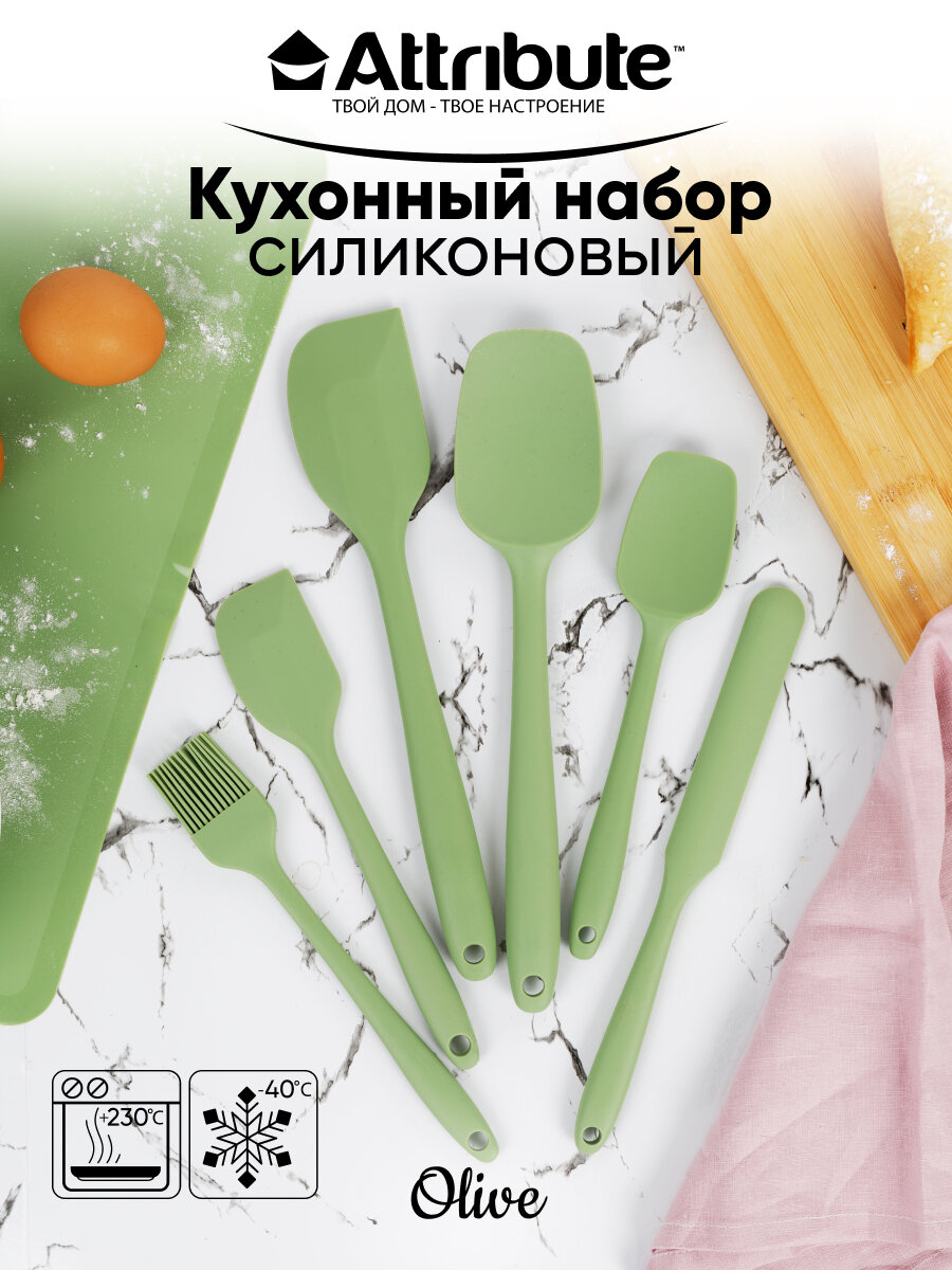 Набор кухонных принадлежностей для выпечки: лопатки и кисточки "ATTRIBUTE OLIVE", 6шт, цвет оливковый интересное:
