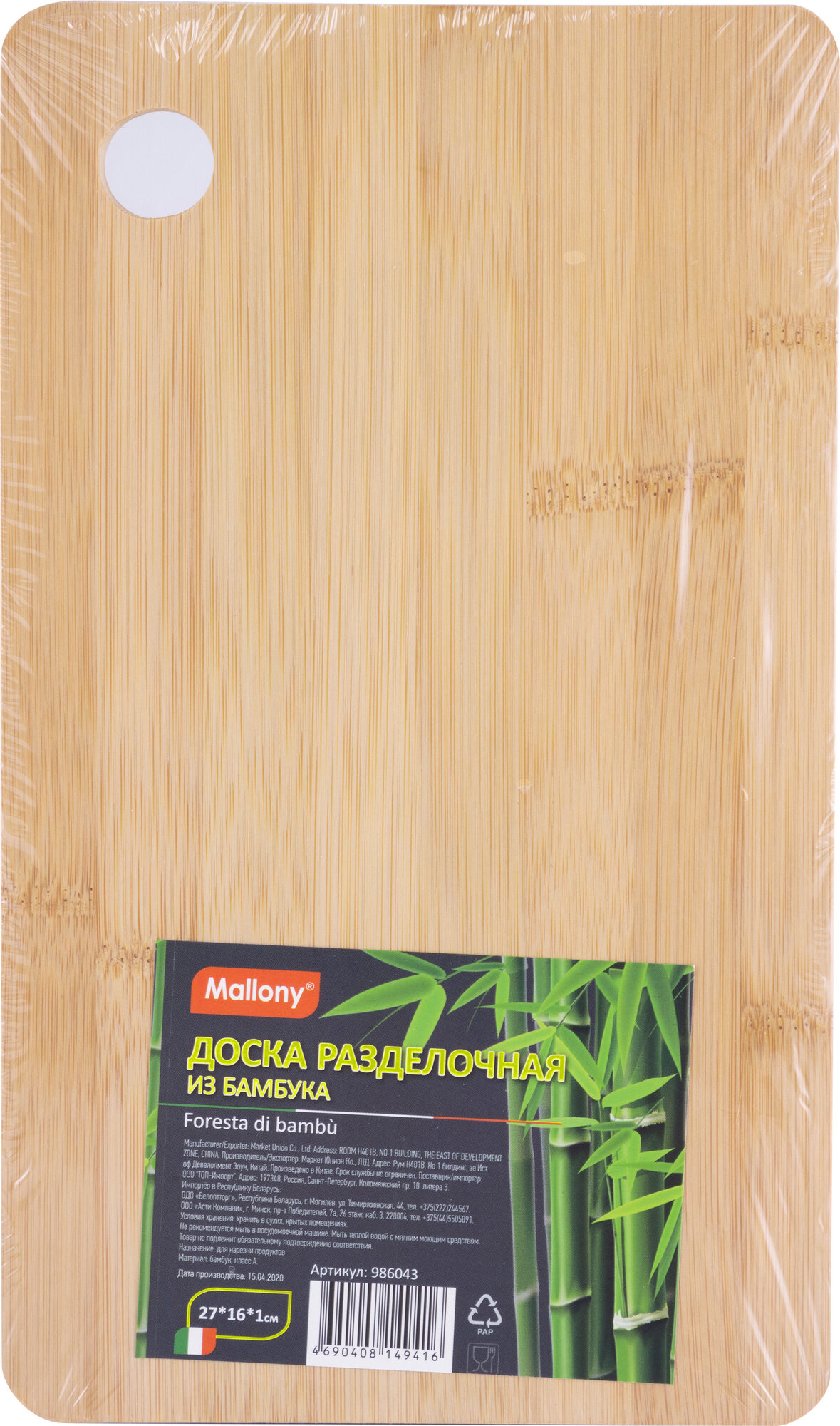 | Подробная комплектация | Доска разделочная MALLONY Foresta di bambù, 27*16*1см, бамбук |