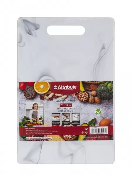 Разделочная доска ATTRIBUTE CUT.BOAR MARBLE WHITE, двухсторонняя, 30x20 см