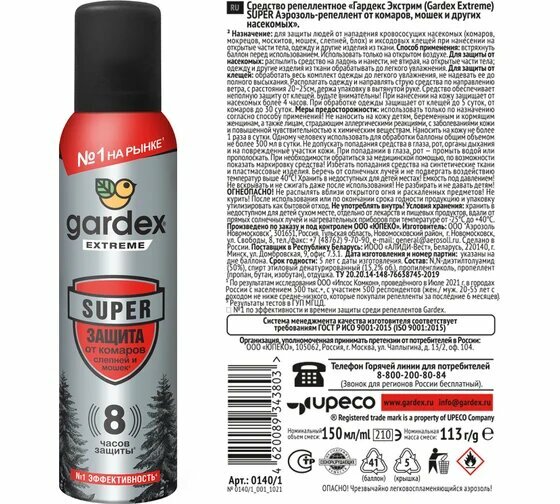 | Подробная комплектация | Аэрозоль от комаров, слепней, мошек, Gardex Extreme Super |