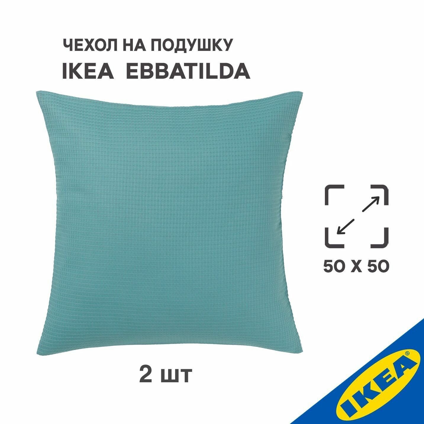 Купить Комплект 2 шт. Чехол для подушки IKEA EBBATILDA эббатильда, 50x50 см, серо-бирюзовый