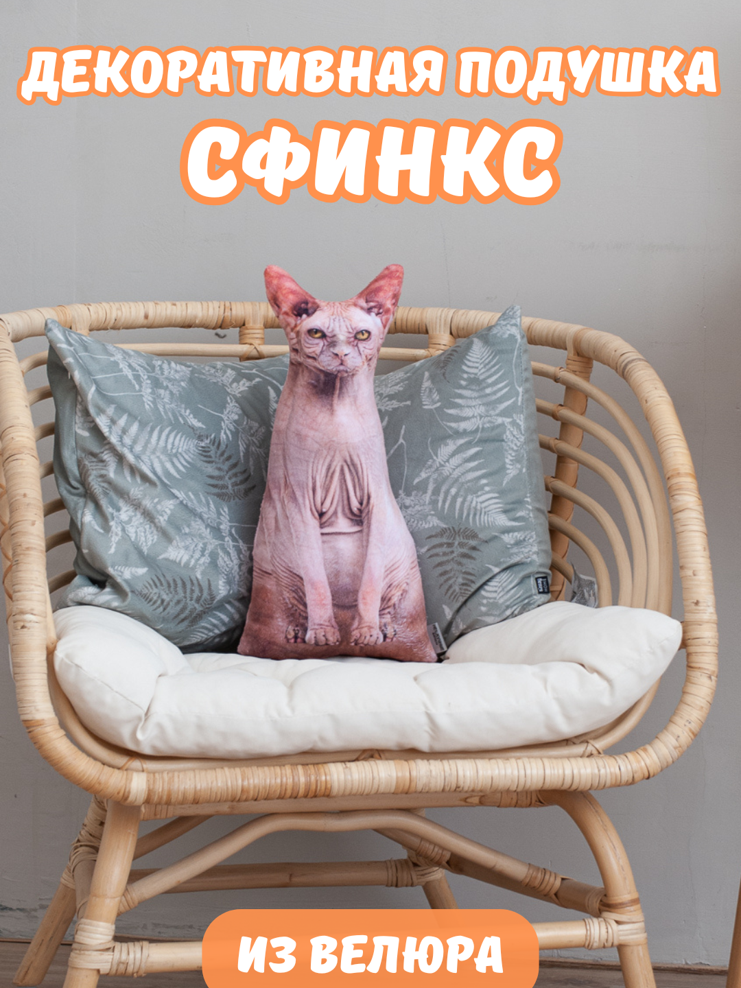 СохранитьРеалистичная мягкая декоративная подушка-игрушка кошка Сфинкс от бренда Нескучные вещи интересное: