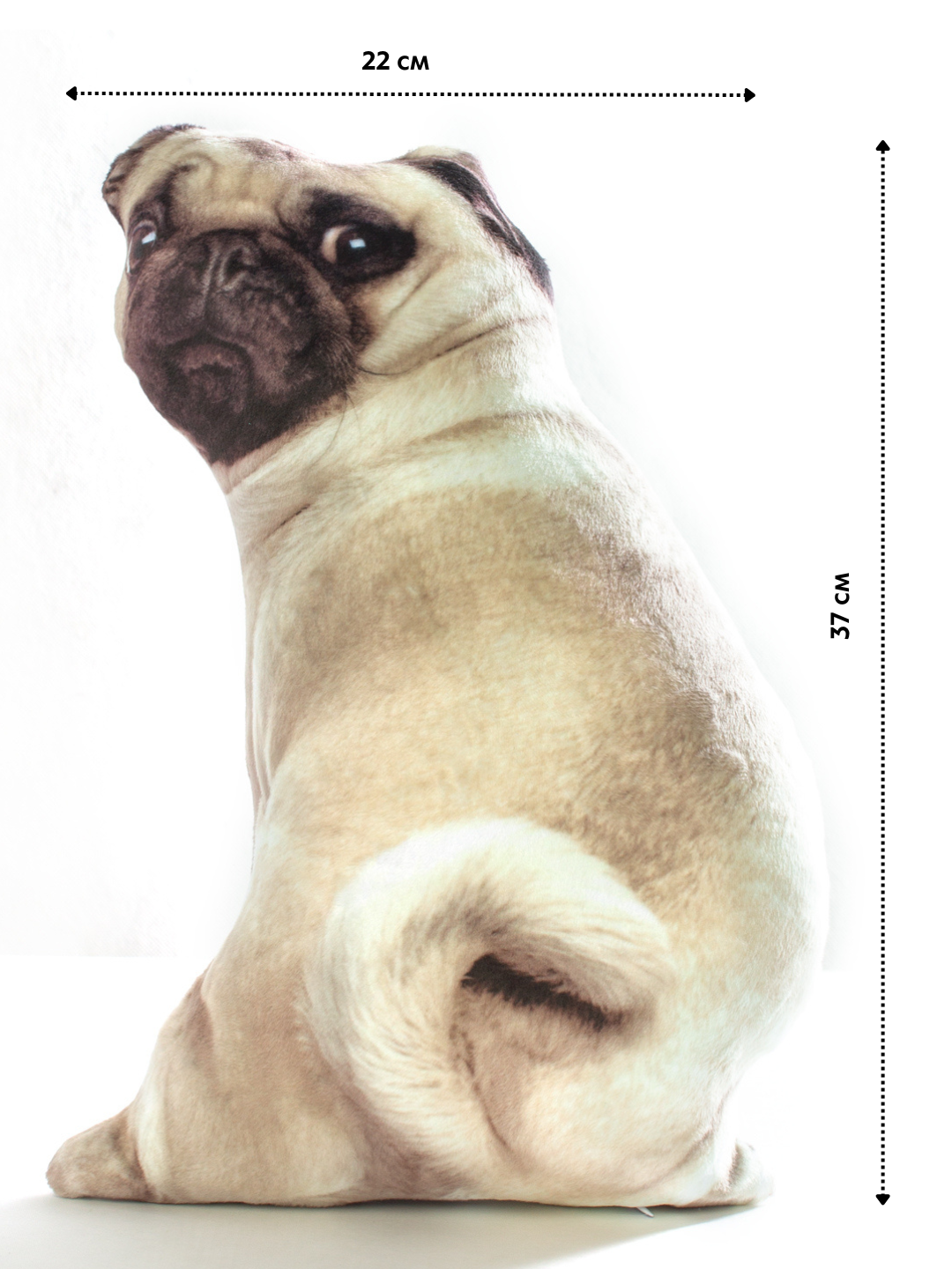 Купить Реалистичная мягкая декоративная подушка-игрушка собака Мопс от бренда Нескучные вещи