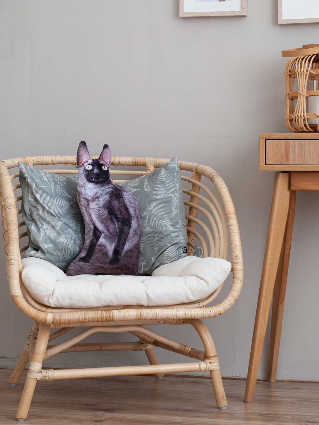 Купить Реалистичная мягкая декоративная подушка-игрушка кошка кот Корниш рекс от бренда Нескучные вещи