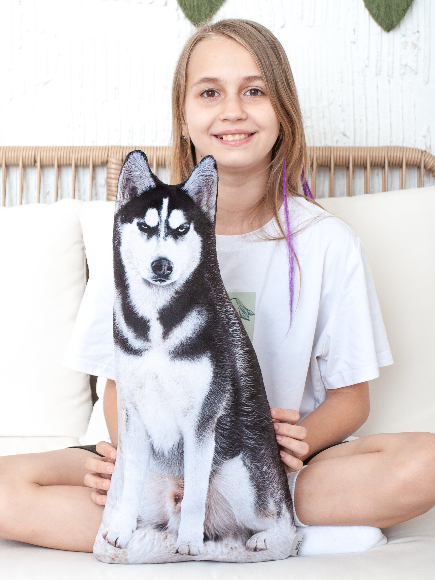 СохранитьРеалистичная мягкая декоративная подушка-игрушка собака Хаски от бренда Нескучные вещи интересное: