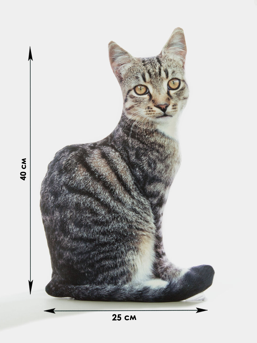 СохранитьРеалистичная мягкая декоративная подушка-игрушка кошка кот Полосатая от бренда Нескучные вещи интересное: