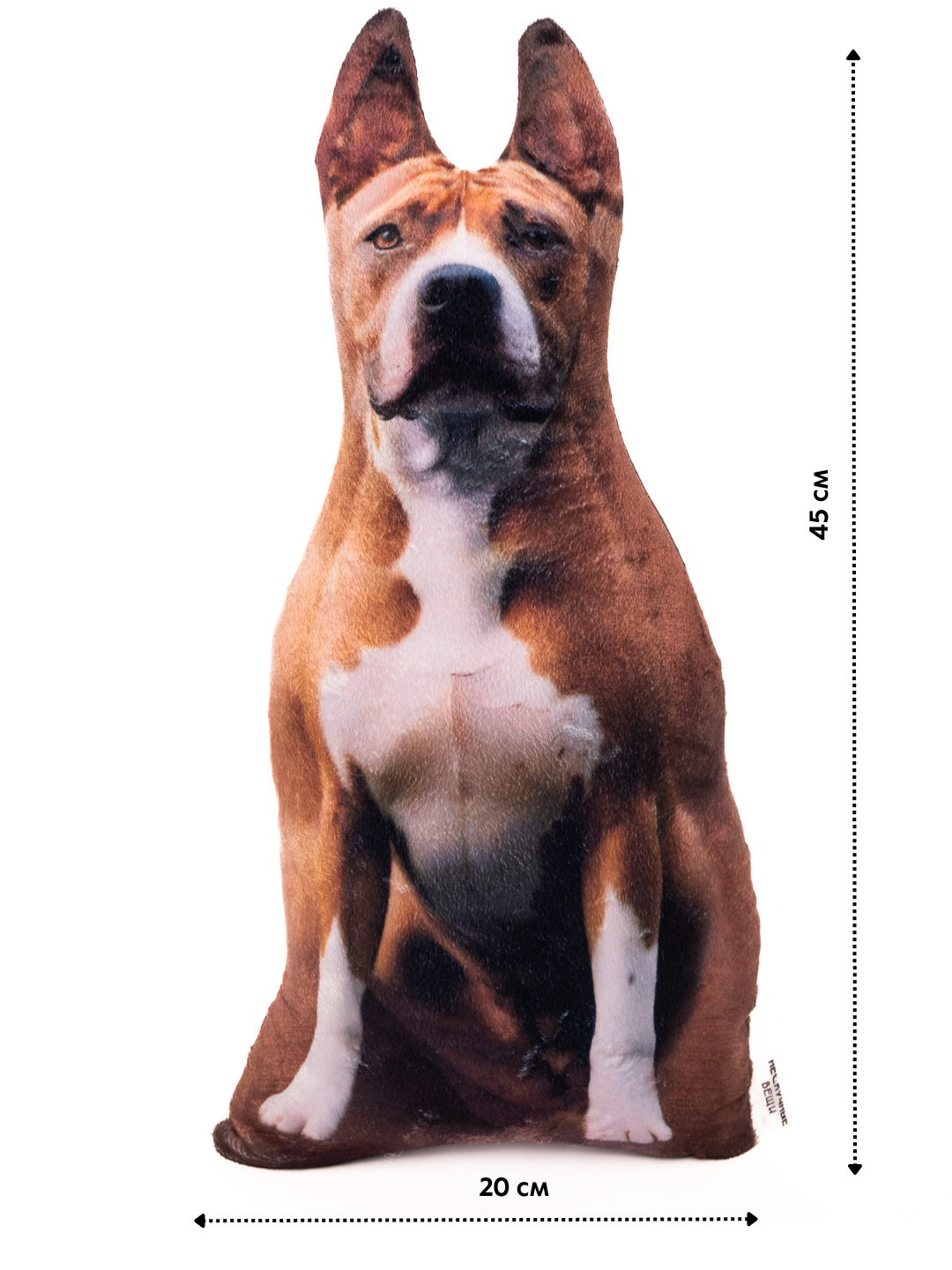 СохранитьРеалистичная мягкая интерьерная подушка-игрушка собака Амстафф от бренда Нескучные вещи интересное: