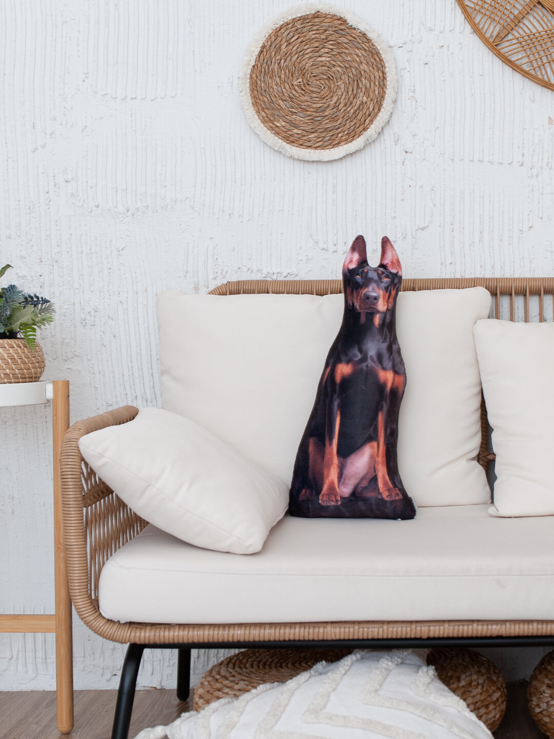 СохранитьРеалистичная мягкая декоративная подушка-игрушка собака Доберман от бренда Нескучные вещи интересное: