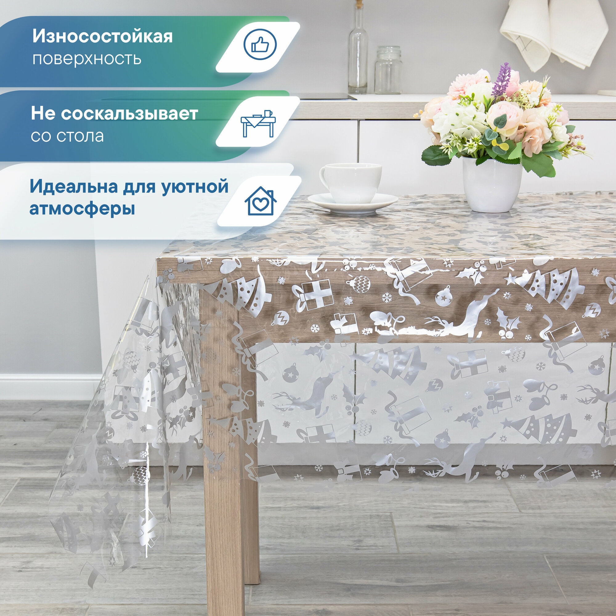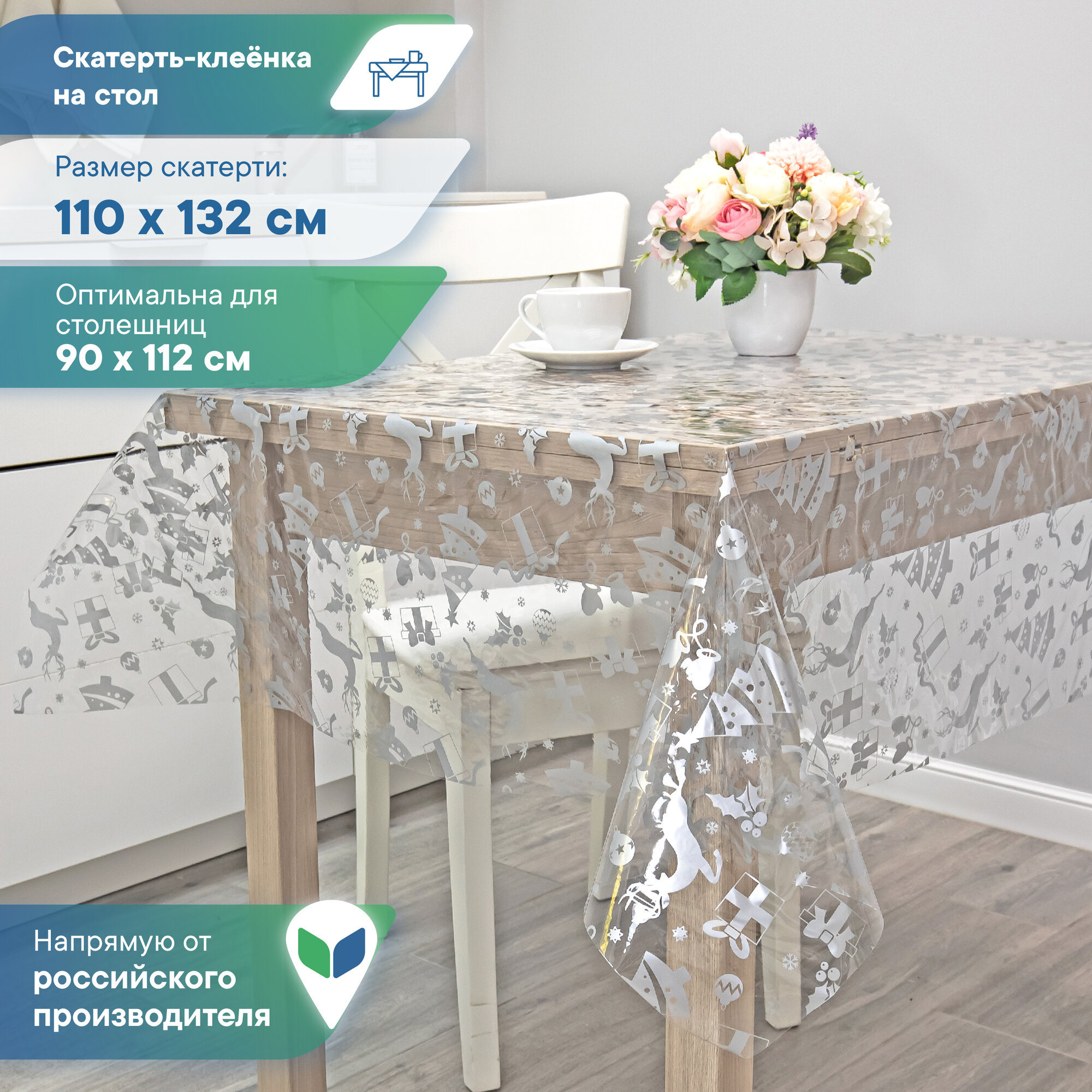 | Дополнительная информация | клеенка скатерть на кухонный стол прямоугольная, праздничная водооталвивающая, , клеенка на стол |