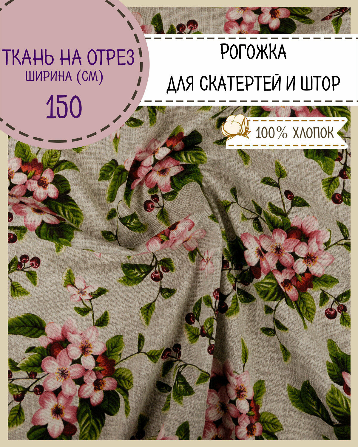 Купить ткань для скатерти/штор Рогожка "Цветочный вальс", ш-150 см, на отрез, цена за пог. метр