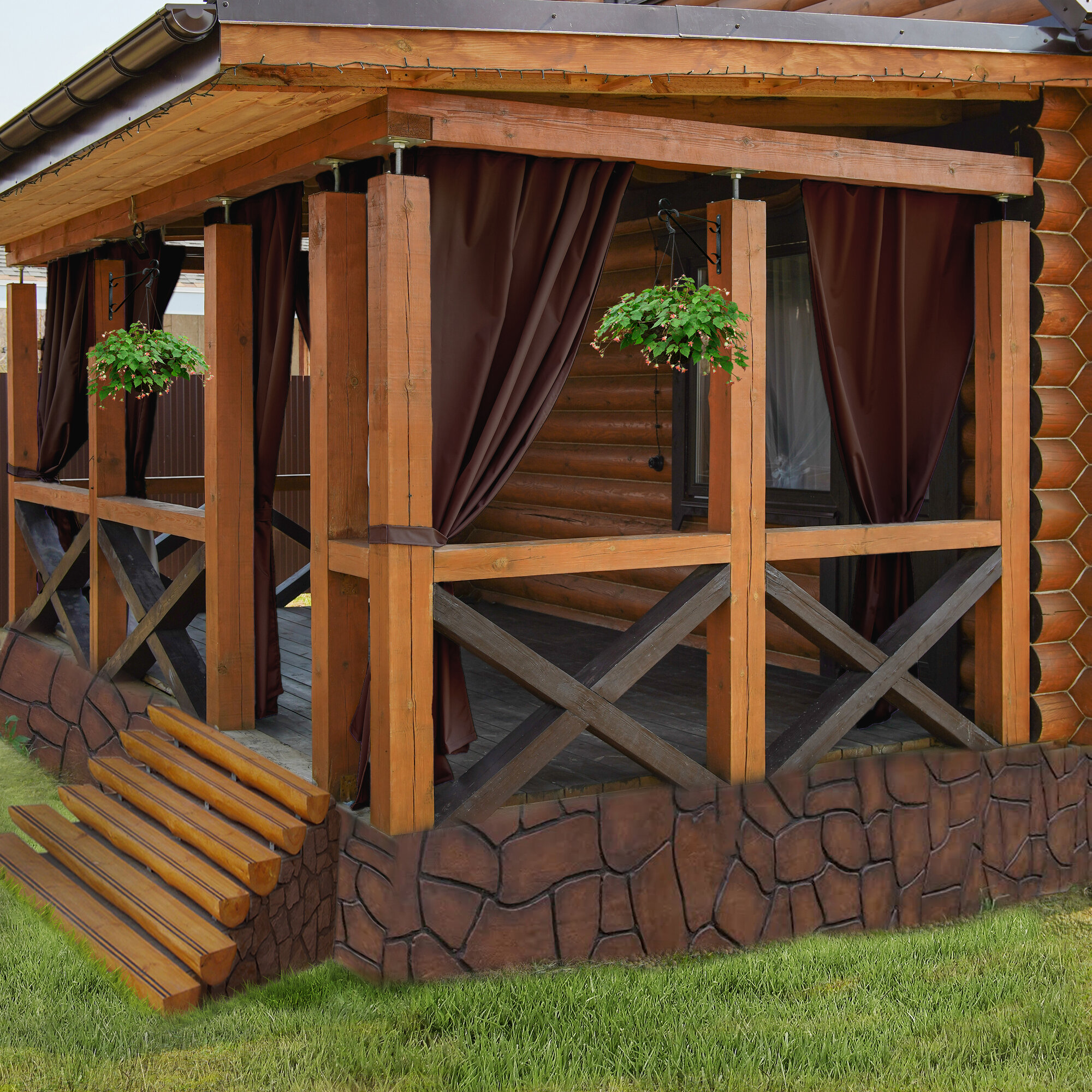 Шторы для беседки уличные 170*144см Шоколад
