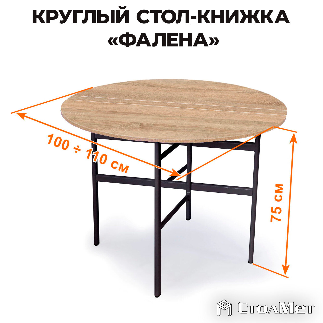 Круглый стол-книжка «Фалена», 110, дуб сонома, черный
