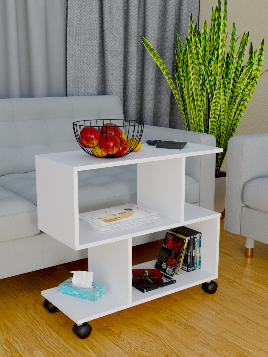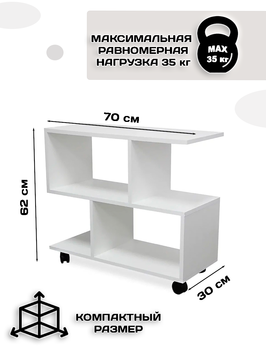 Столик журнальный на колесиках, 70х30х62 см, белый