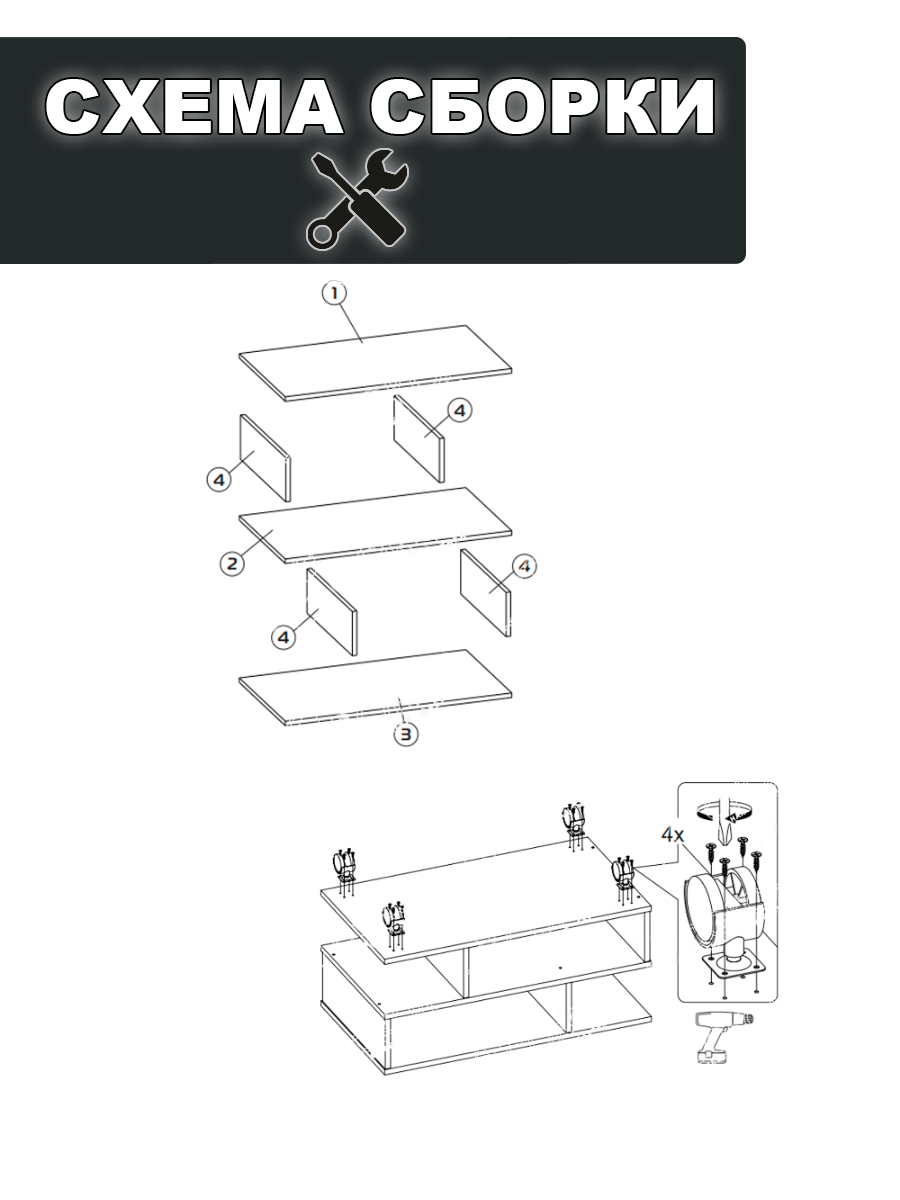 Столик журнальный на колесиках, 70х30х62 см, черный