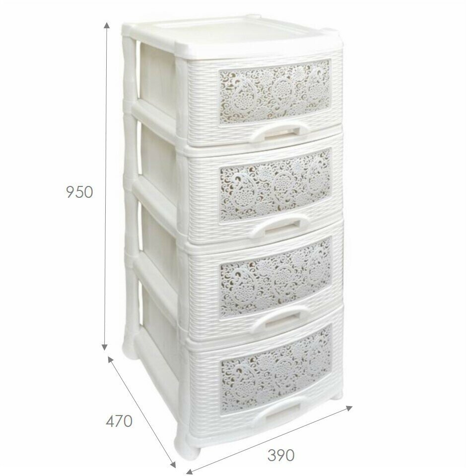 Комод пластиковый Ажур венге с 4 ящиками / универсальный стеллаж для хранения вещей / органайзер для аксессуаров