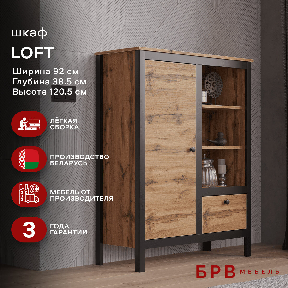 Комод БРВ мебель Лофт REG1D1S/90