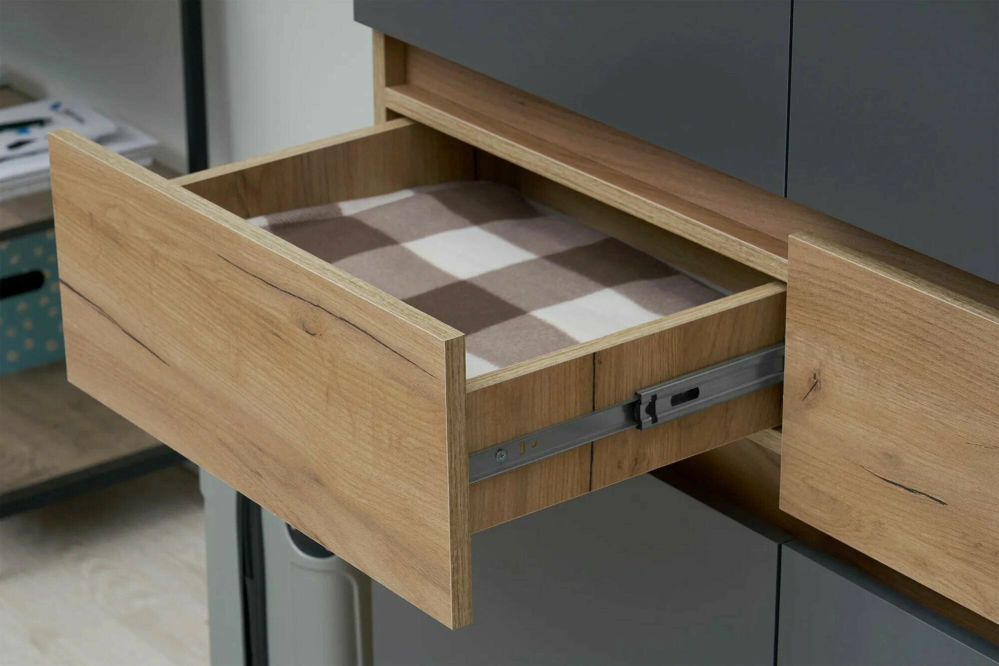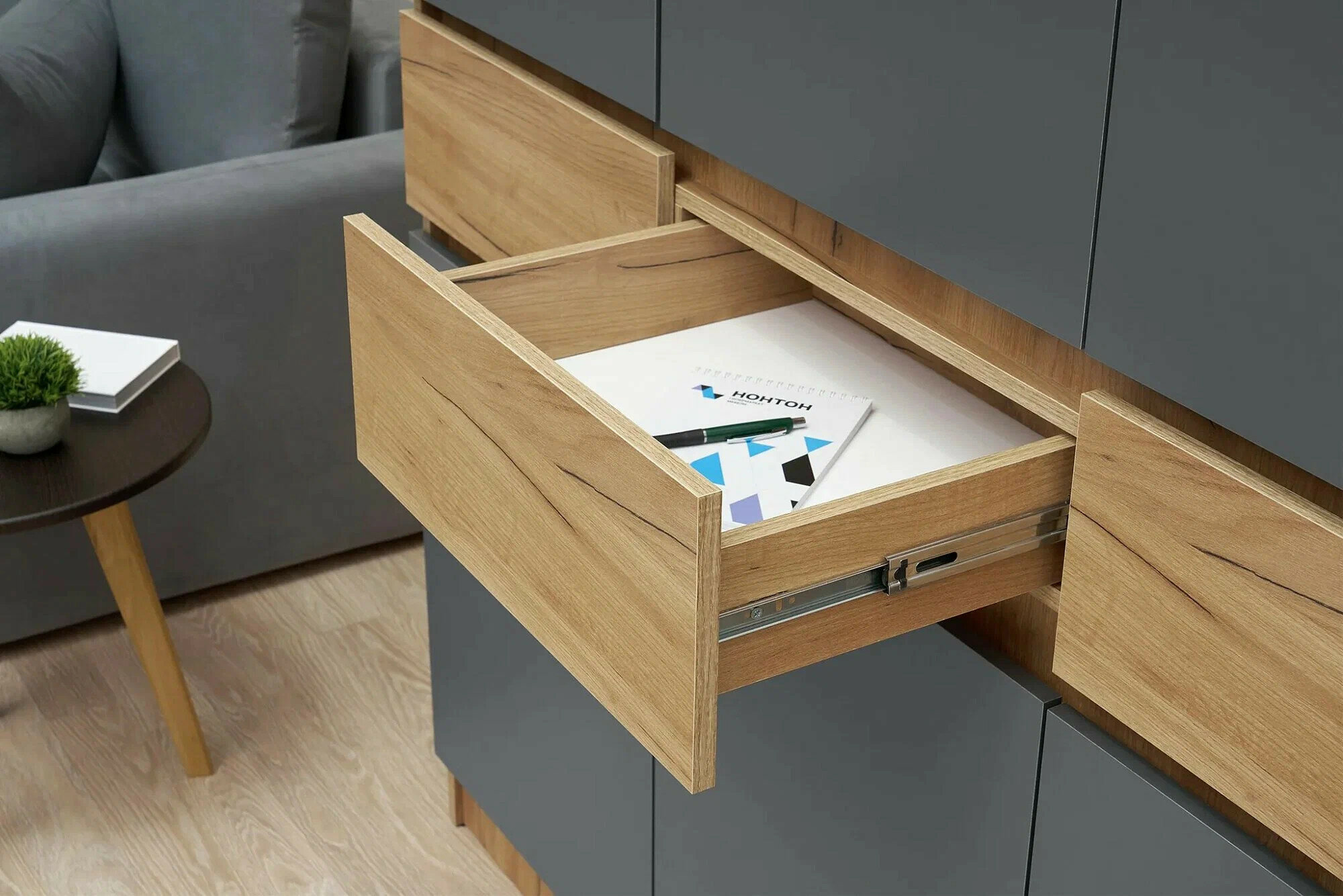 Шкаф для одежды с ящиками Нонтон Роджина, дуб крафт / графит, 100 см