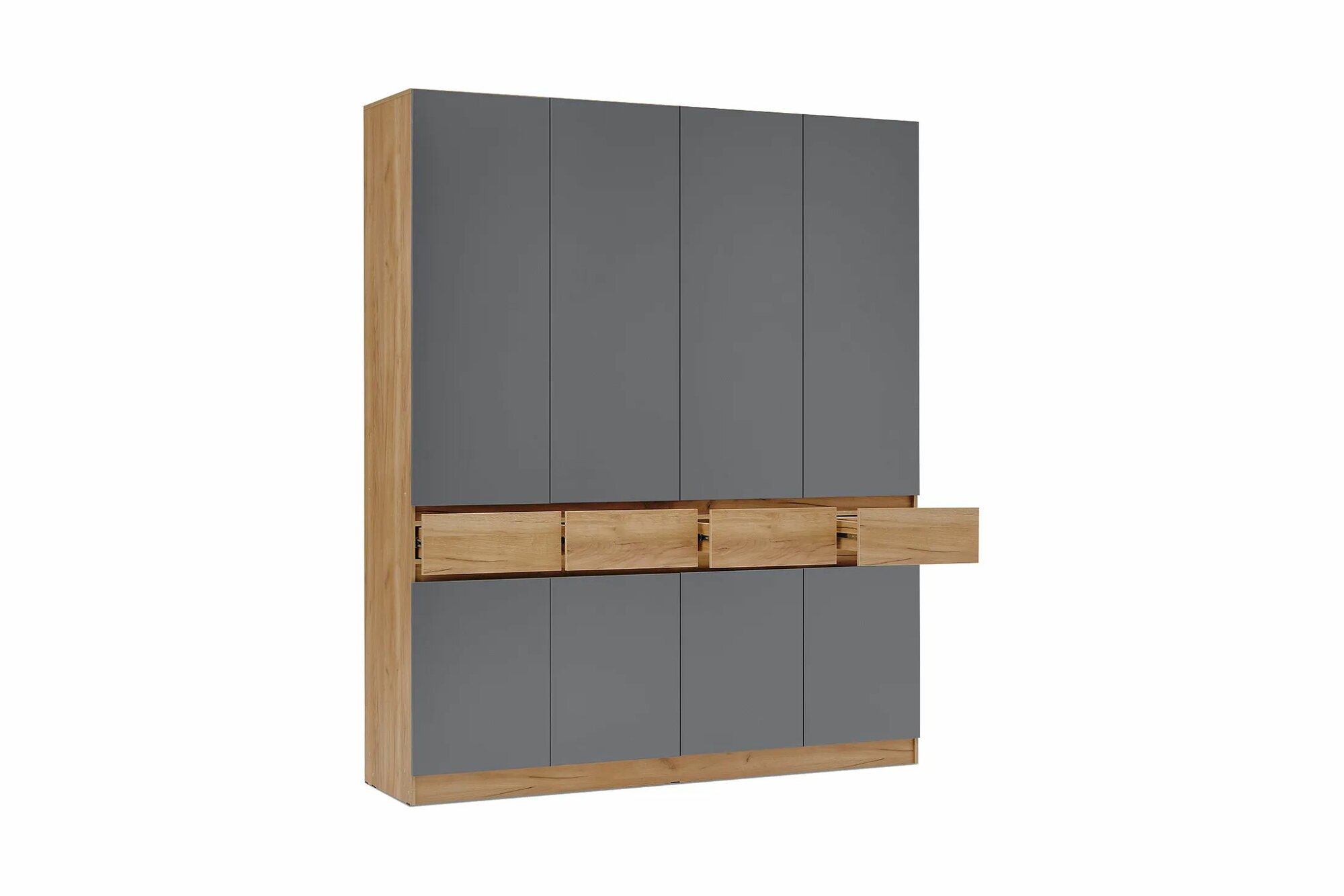 Шкаф Роджина для одежды 4-х створчатый с ящиками, Графит/Дуб Крафт Белый, 199.8x52x240 см