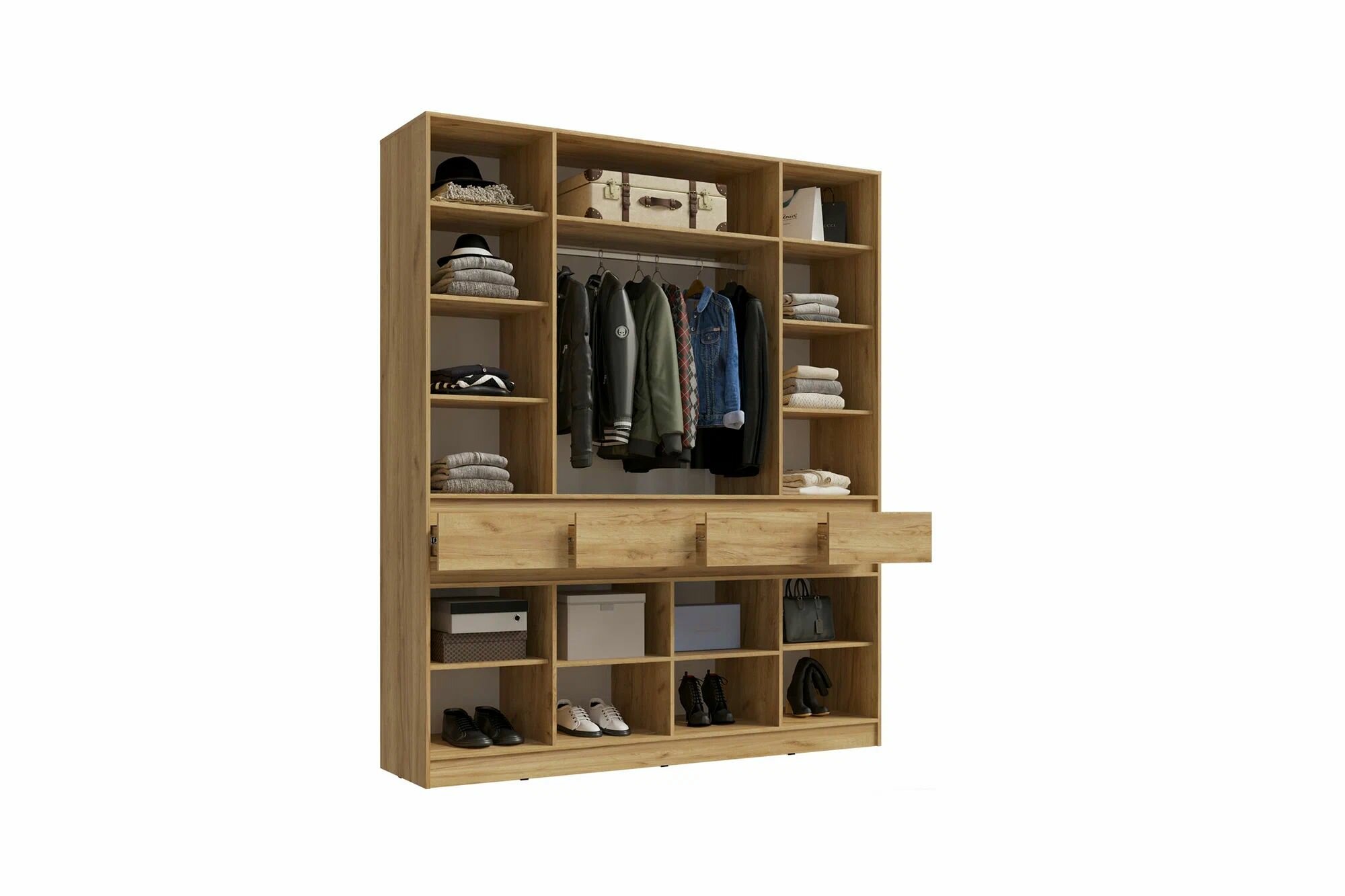 Прихожая Роджина Шкаф 4-х ств распашной Дуб крафт, Белый глянец/Шкаф для одежды с ящиками и штангой
