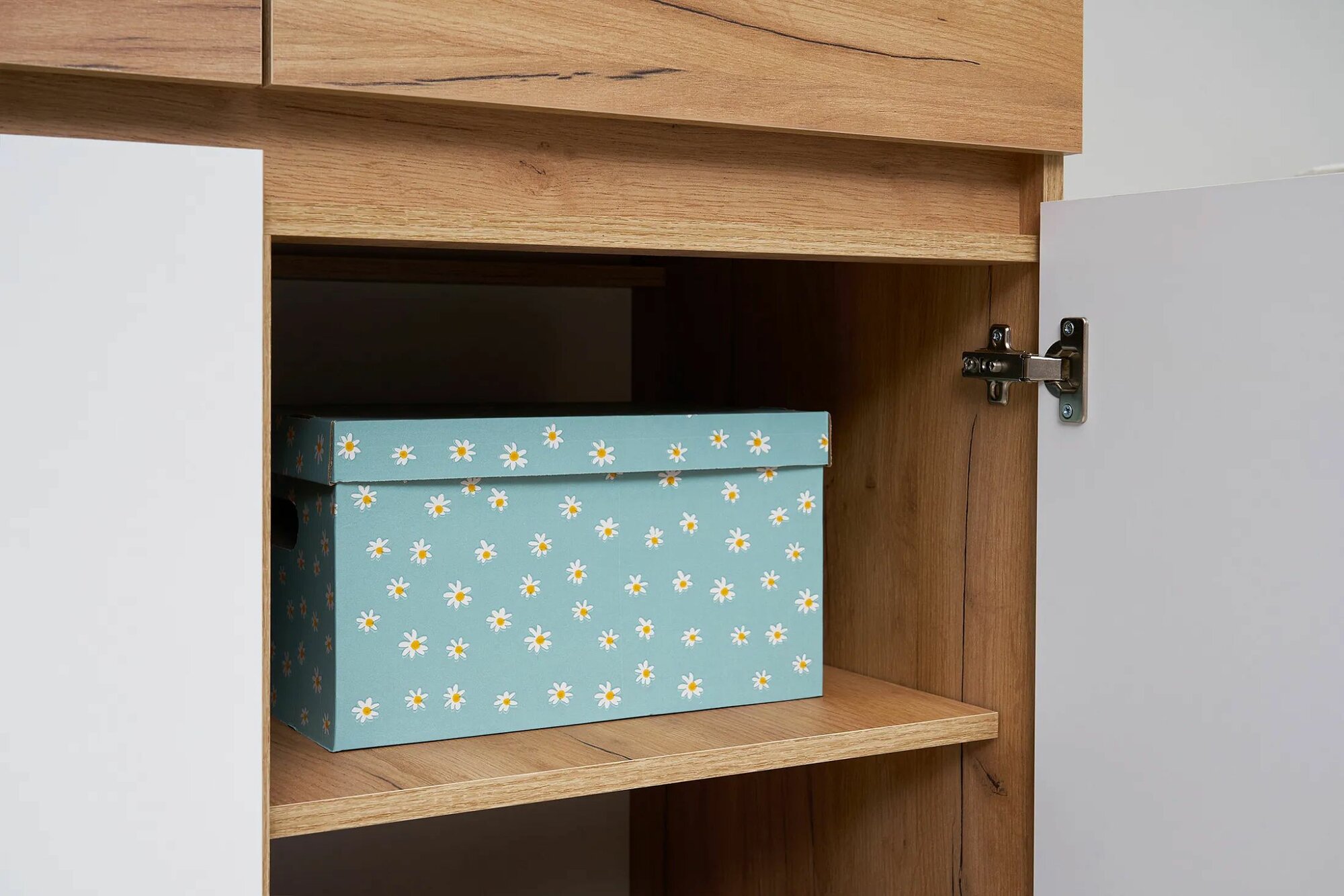 Шкаф для одежды с ящиками Нонтон Роджина, дуб крафт / белый глянец, 199 см