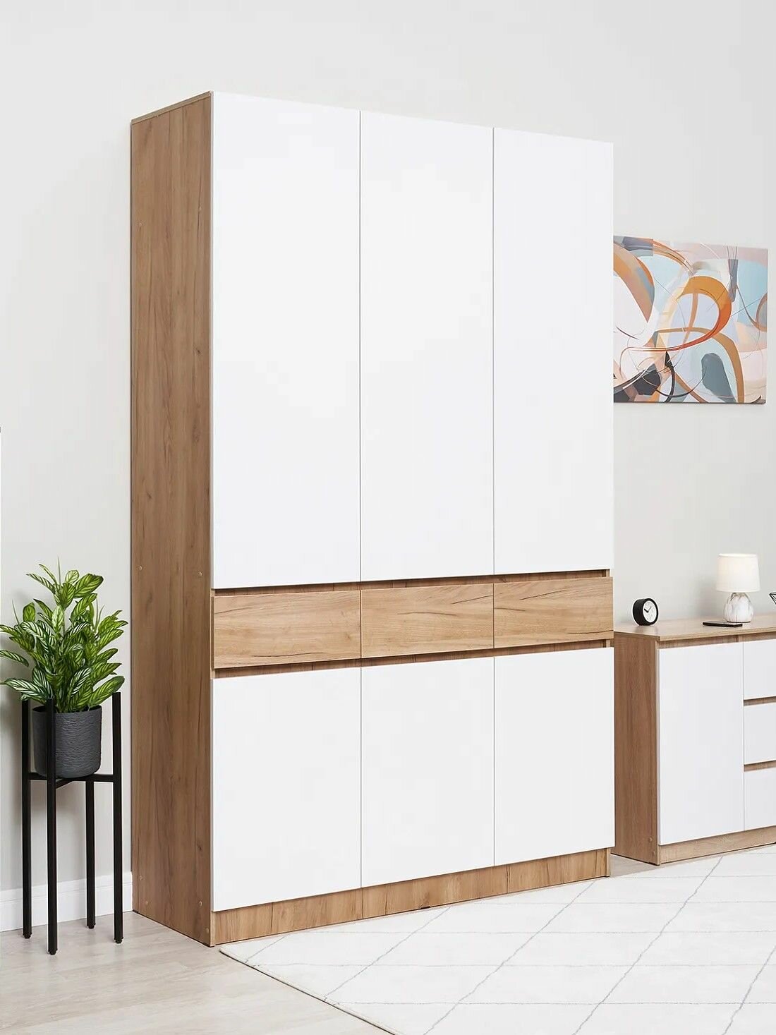 Шкаф распашной 3-х створчатый "Роджина" Дуб крафт/Белый глянец интересное: