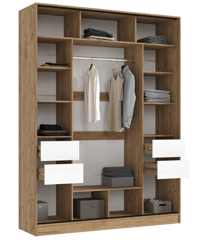 Прихожая Роджина Шкаф 4-х ств распашной Дуб крафт, Белый глянец/Шкаф для одежды с ящиками и штангой