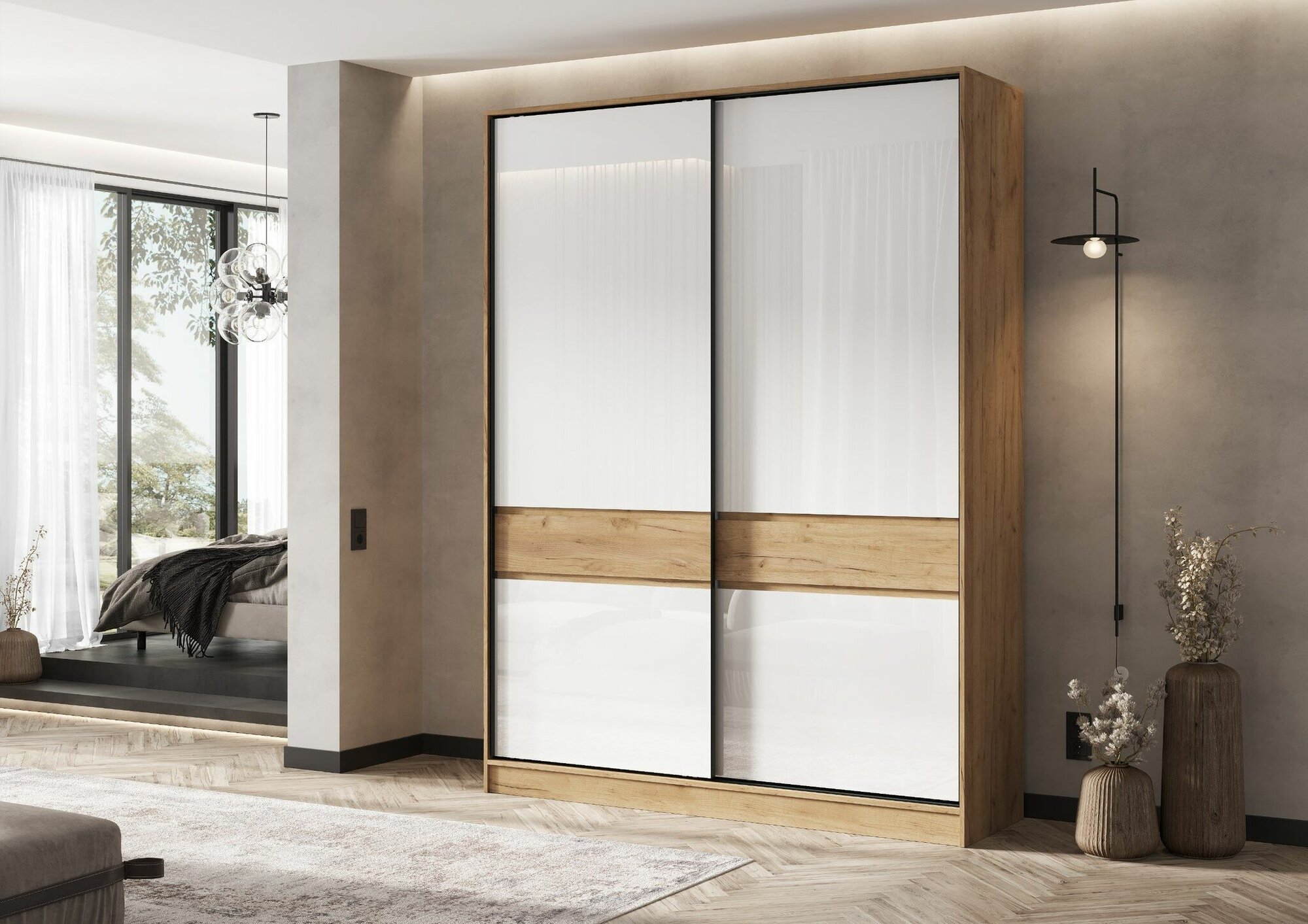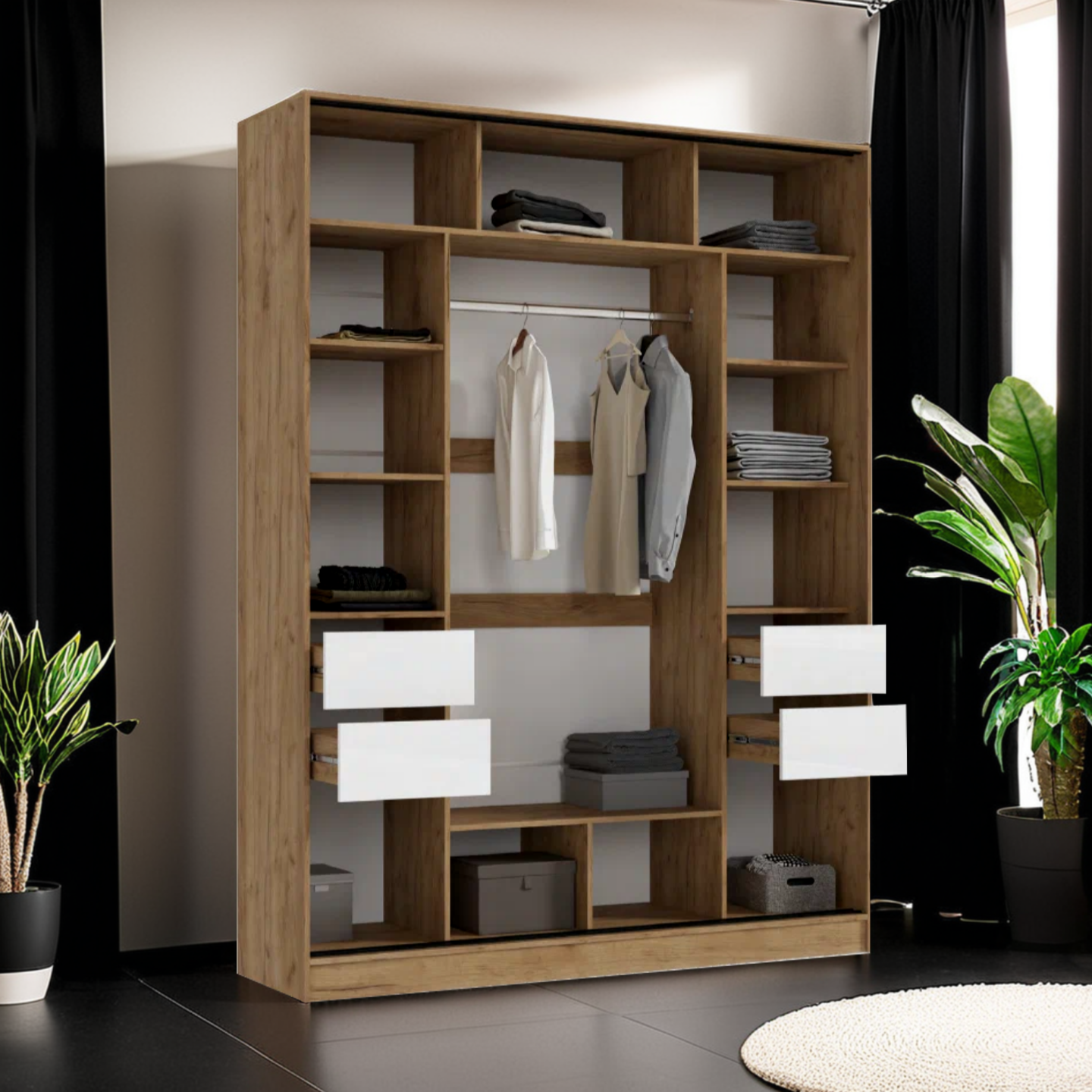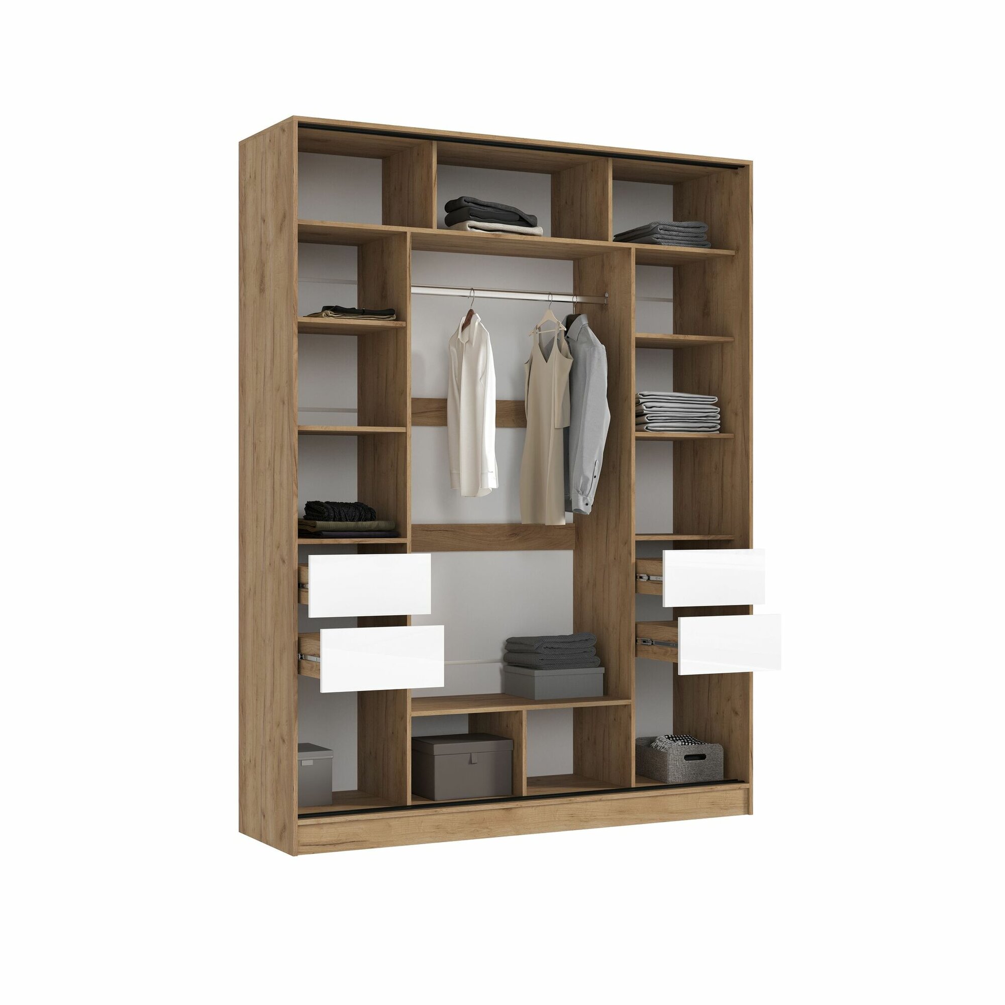 Шкаф для одежды с ящиками Нонтон Роджина, дуб крафт / белый глянец, 199 см