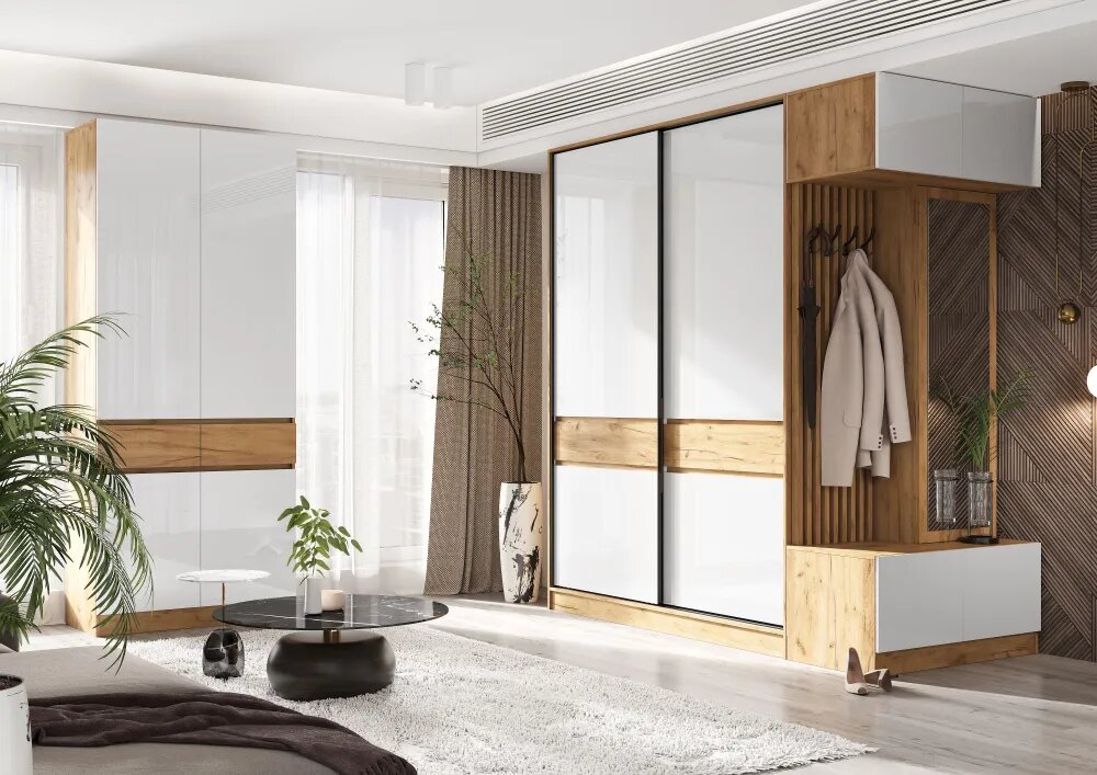 Шкаф распашной 2-х створчатый "Роджина" Дуб Крафт/Белый Глянец