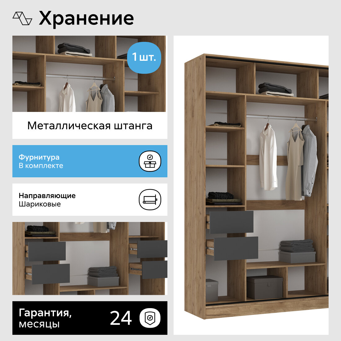 | Особенности | модульный, штанга для вешалок |