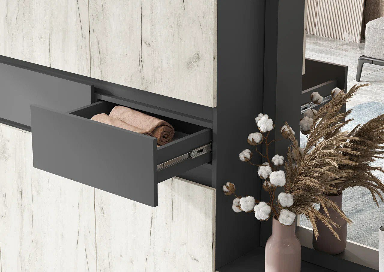 Шкаф для одежды с ящиками Нонтон Роджина, дуб крафт / графит, 199 см