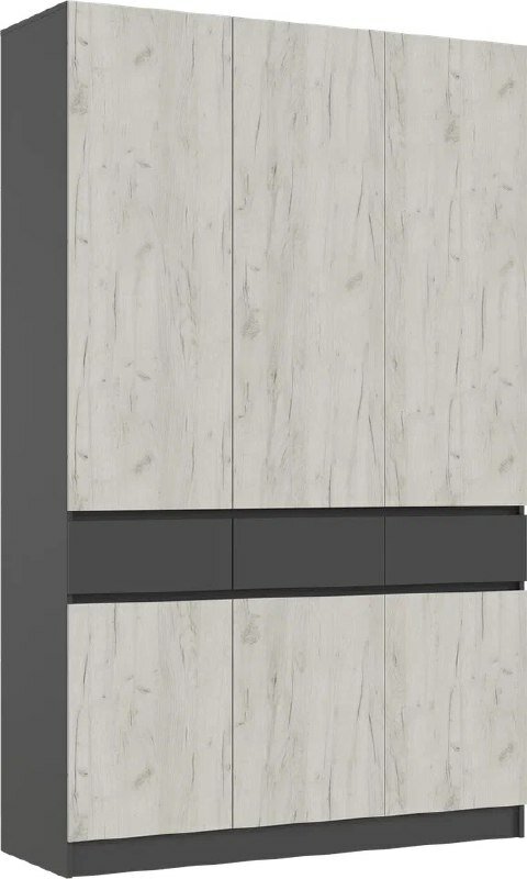 Купить Прихожая Роджина Шкаф 3-х ств Дуб белый крафт, Графит/Шкаф для одежды с ящиками, 150х240х52 см