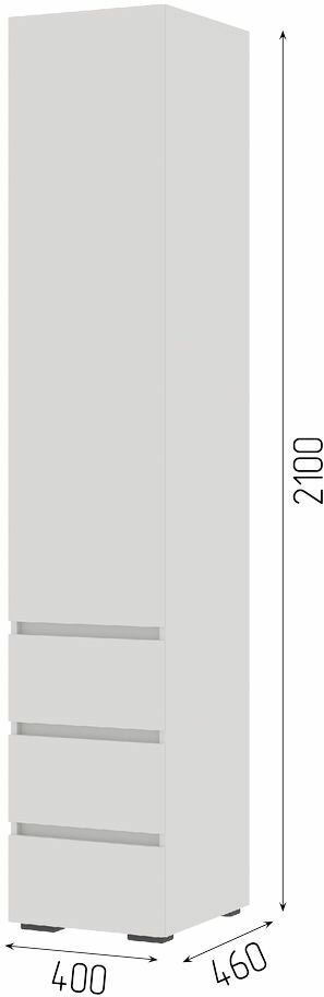 Пенал с ящиками Хелен ПН-03 (400*2100*460, ЛДСП, Белый шагрень, Стендмебель)
