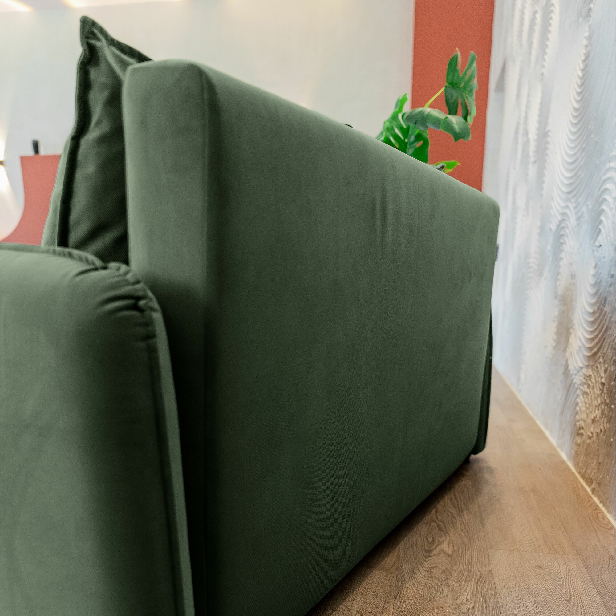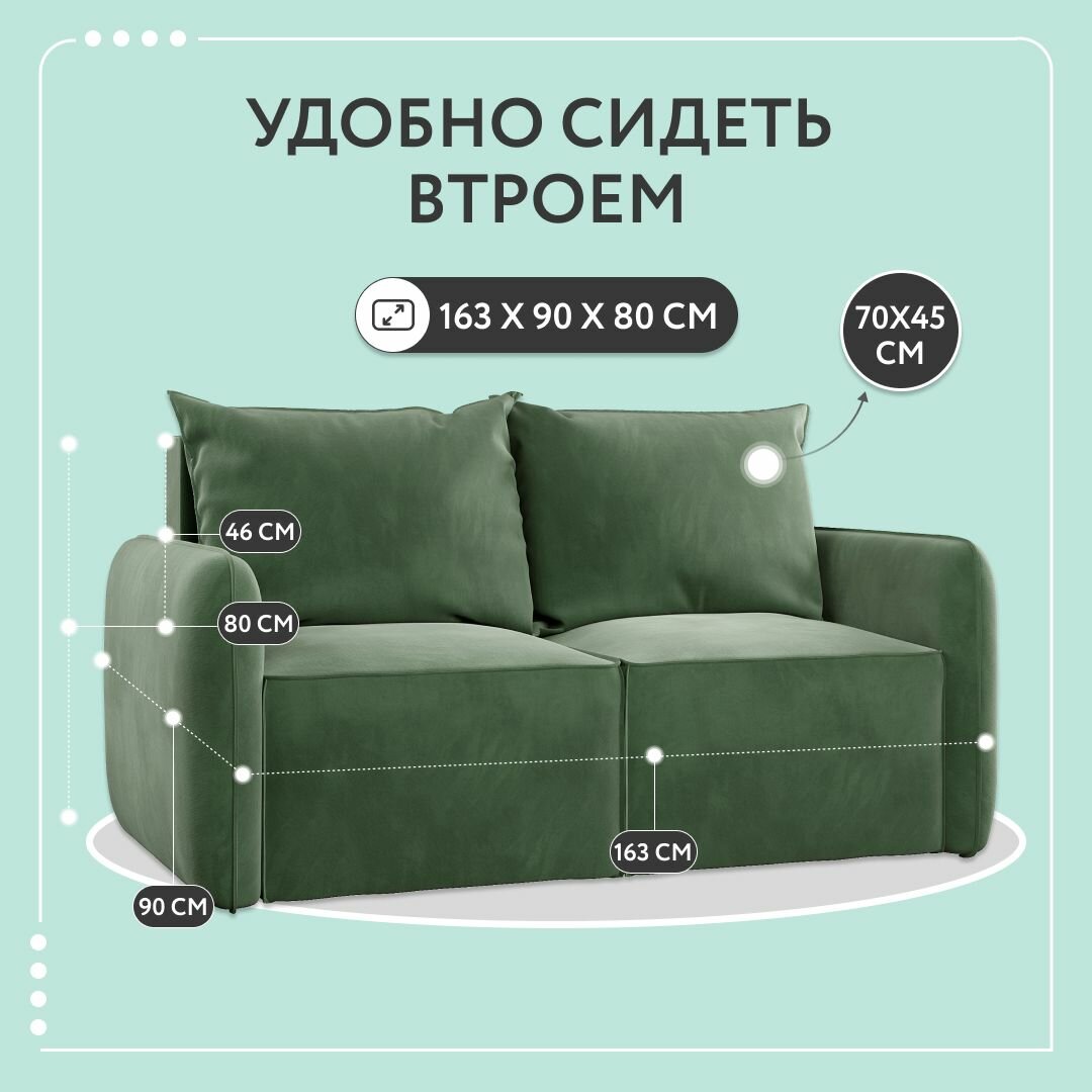 Диван-кровать раскладной прямой Портленд мини в гостиную, аккордеон-евро, велюр, зеленый, 163х90х80