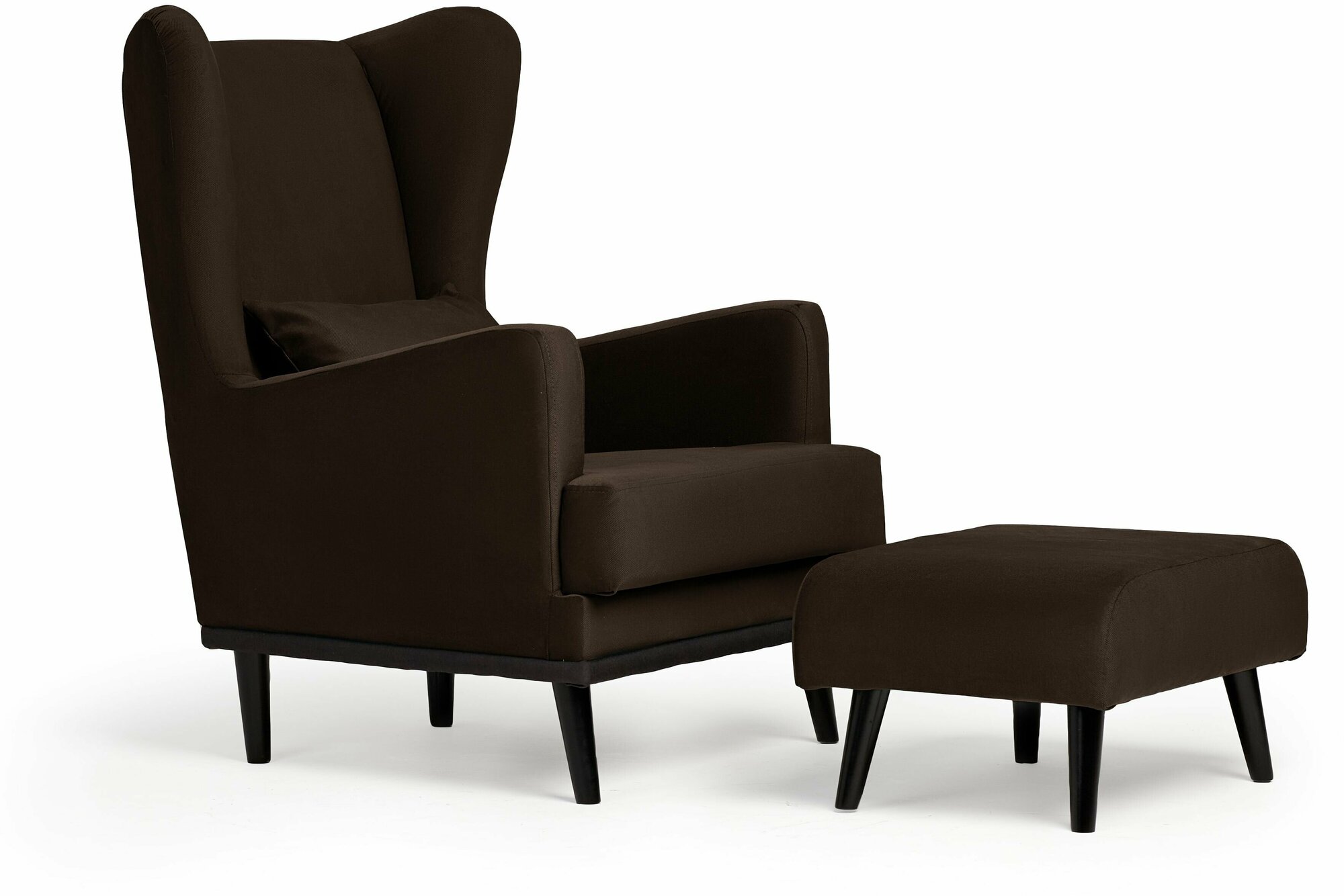 Кресло Оскар мягкое для отдыха в гостиную, на ножках, велюр темно-коричневый