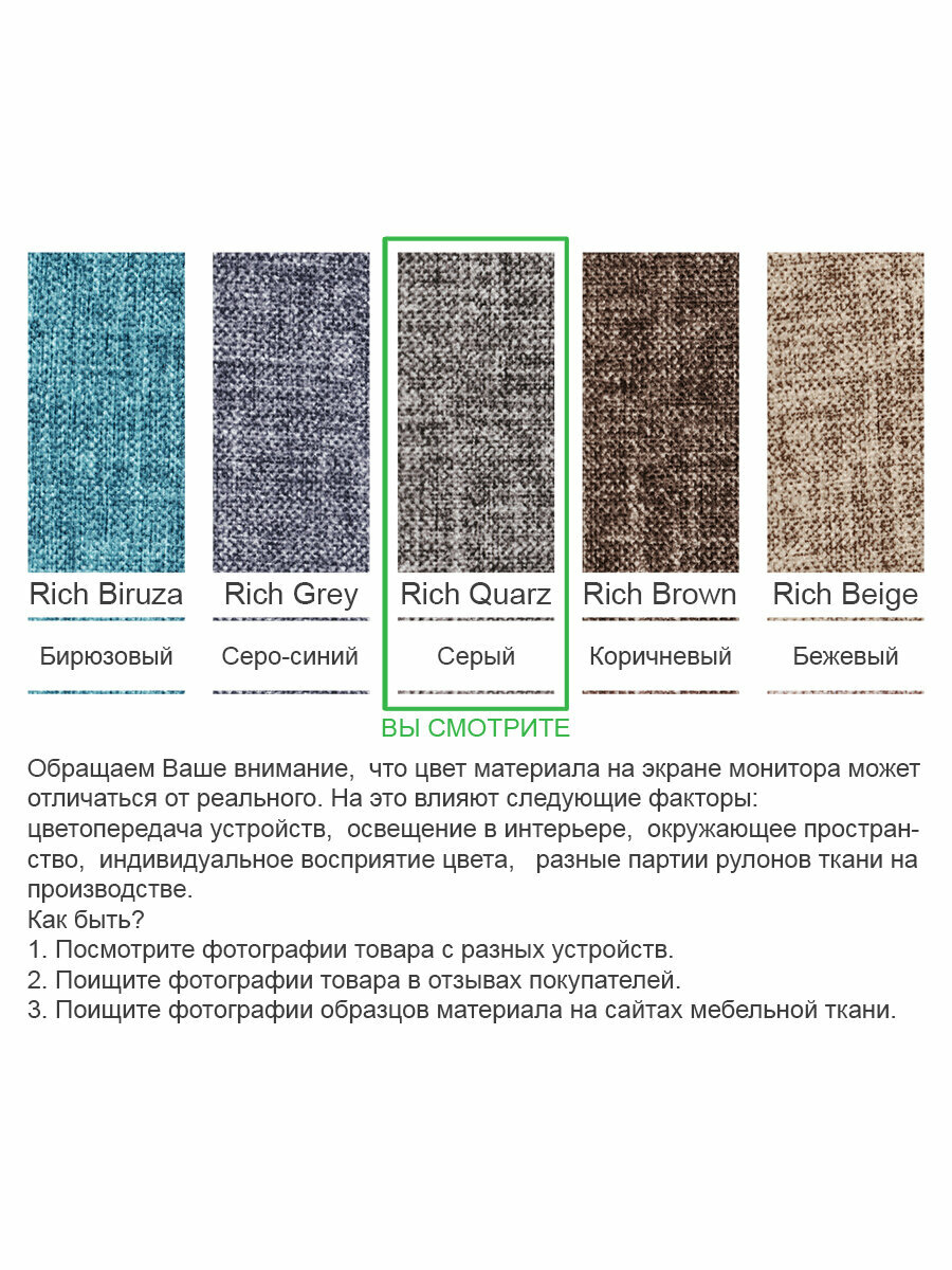 | Дополнительная информация | Обращаем Ваше внимание, что в разложенном виде кресло-кровать может скользить на глянцевом полу, т.к. стоит на двух ножках и колесах. Размер и конструкция колес не предполагает наличие стопора (тормоза). В комплект входят два антискользящих подпятника, которые нужно приклеить на задние ножки. |