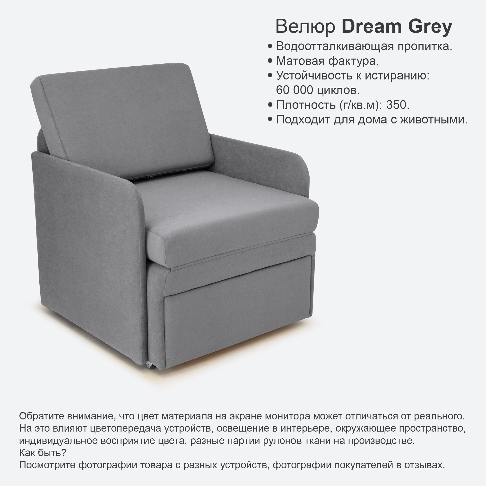 СохранитьКресло-кровать Миник 3в1: кресло, кровать, кушетка. 71х87х74 см, с ящиком, с подлокотниками, выкатной механизм, велюр Dream Grey интересное: