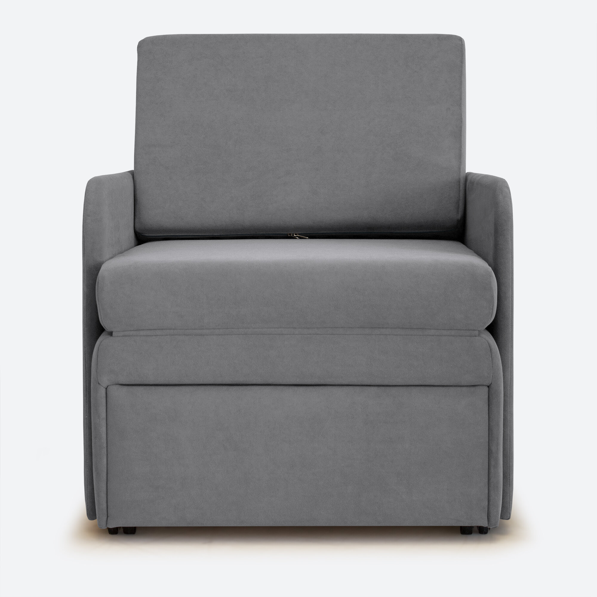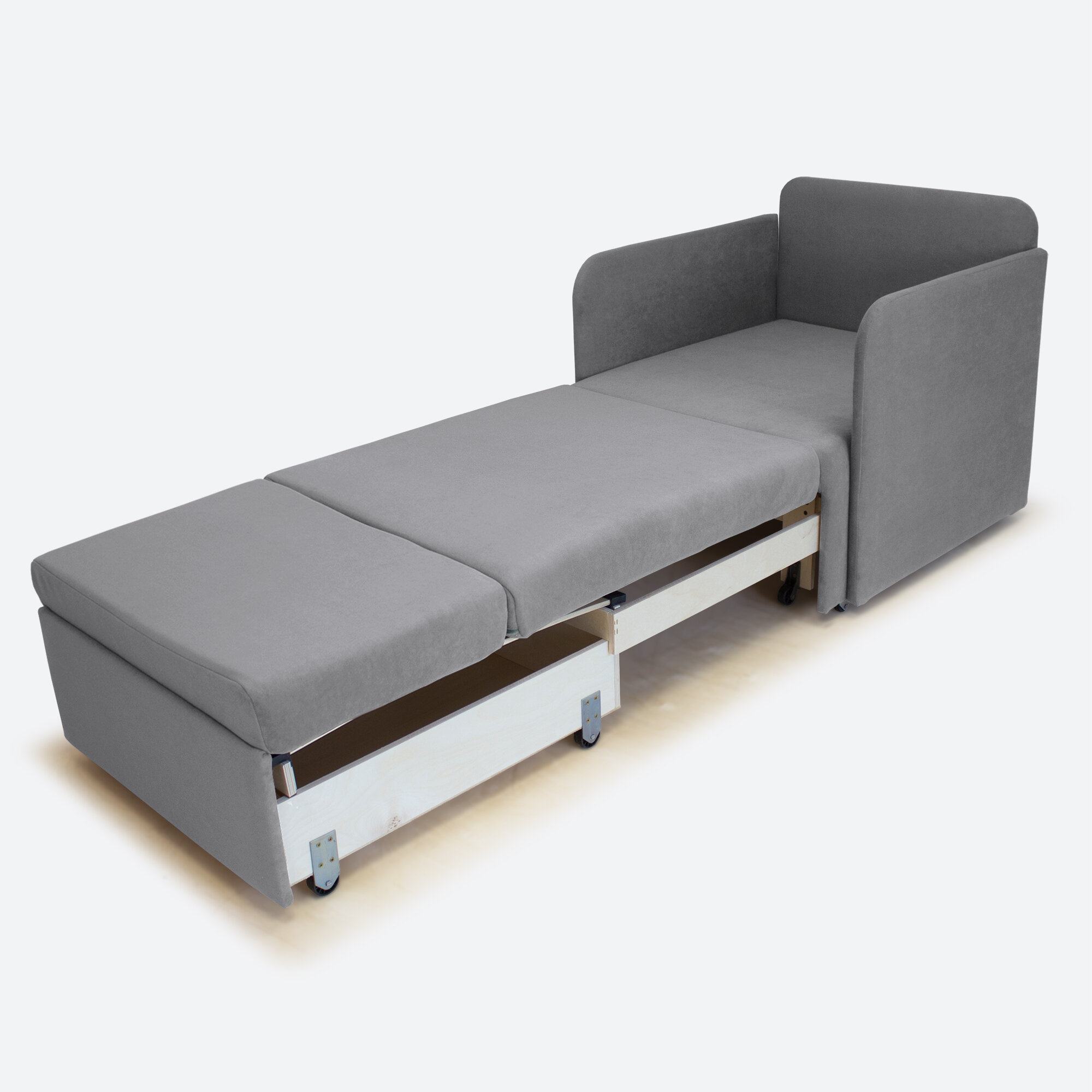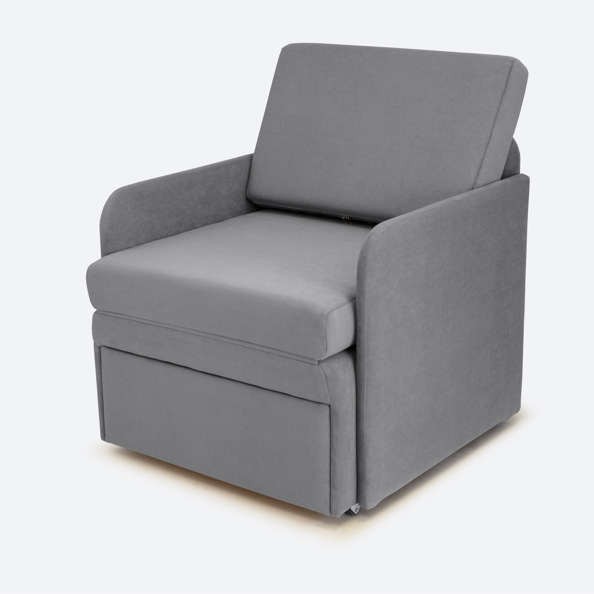 Кресло-кровать Миник 3в1: кресло, кровать, кушетка. 65х89х74 см, с ящиком, выкатной механизм трансформации, велюр Rich Grey