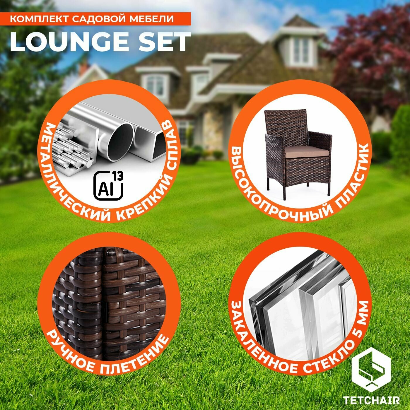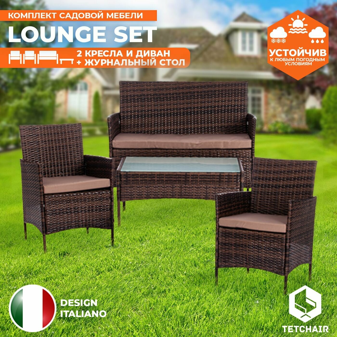 Садовая мебель из искусственного ротанга TetChair Лаундж сет (диван+2 кресла+столик+подушки), коричневый