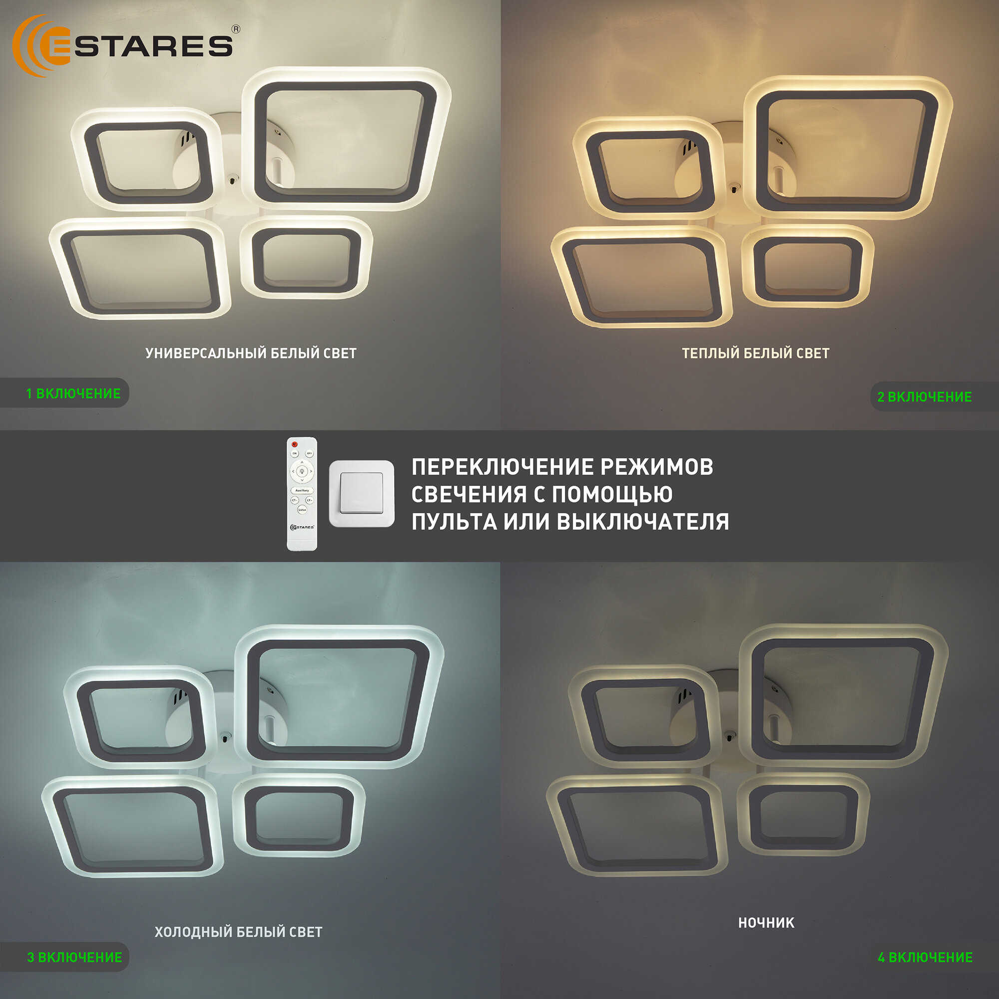 Управляемая светодиодная потолочная люстра OVAL 60W 4S -Estares интересное: