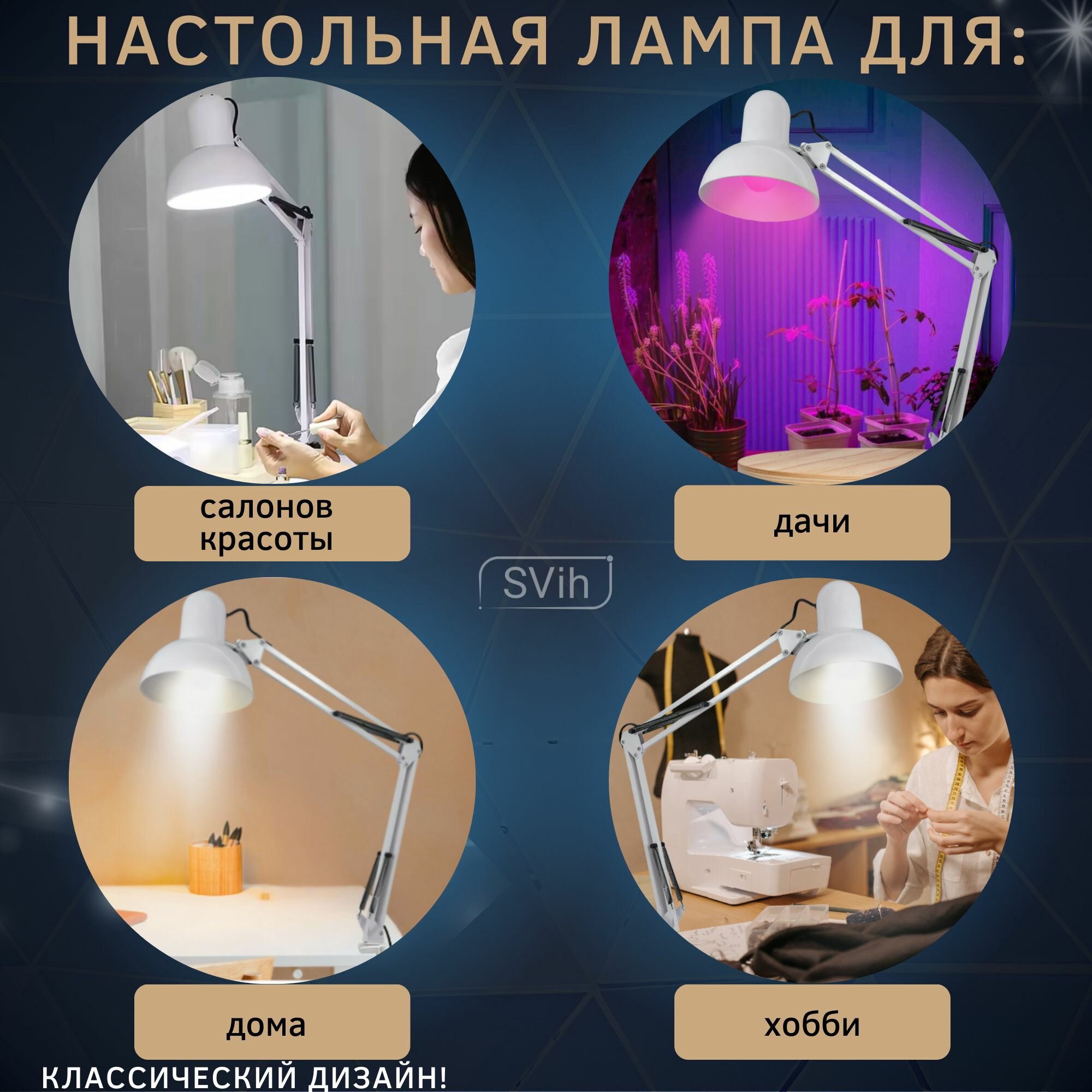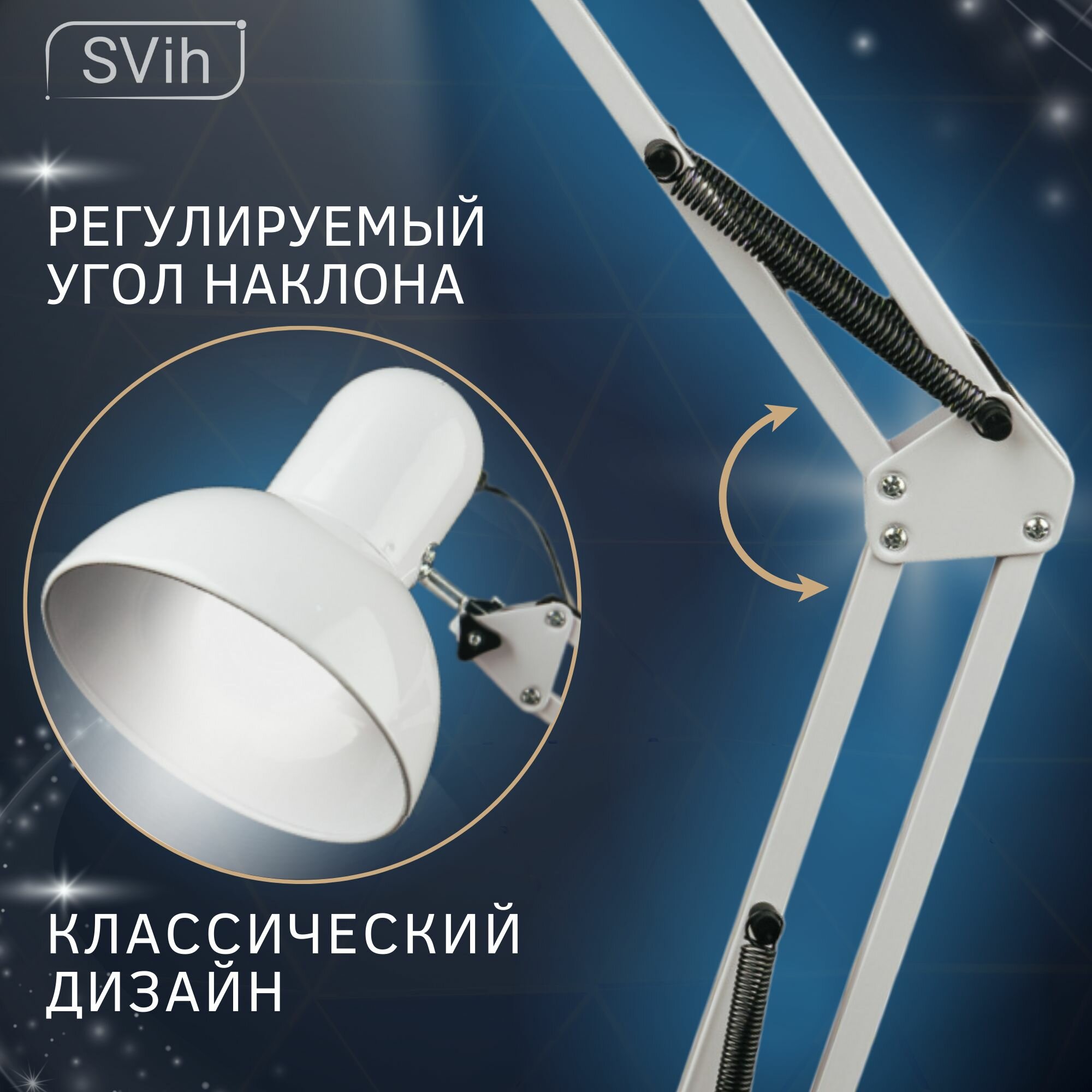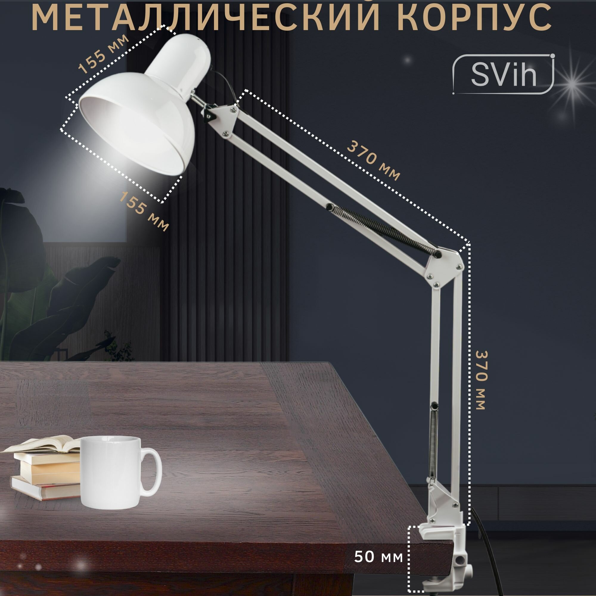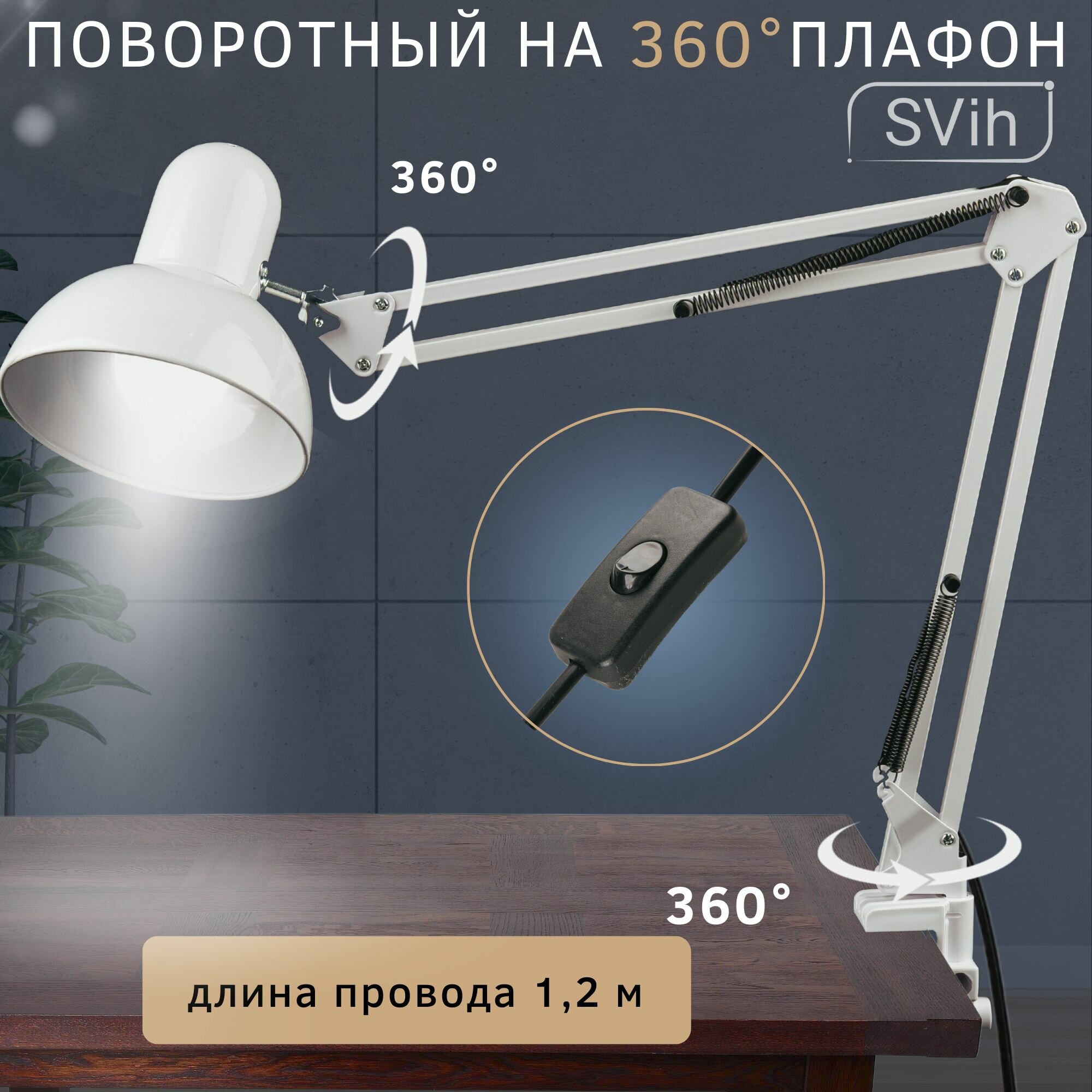 Настольная лампа SVih, E27, складная, на струбцине, белая, 60W интересное: