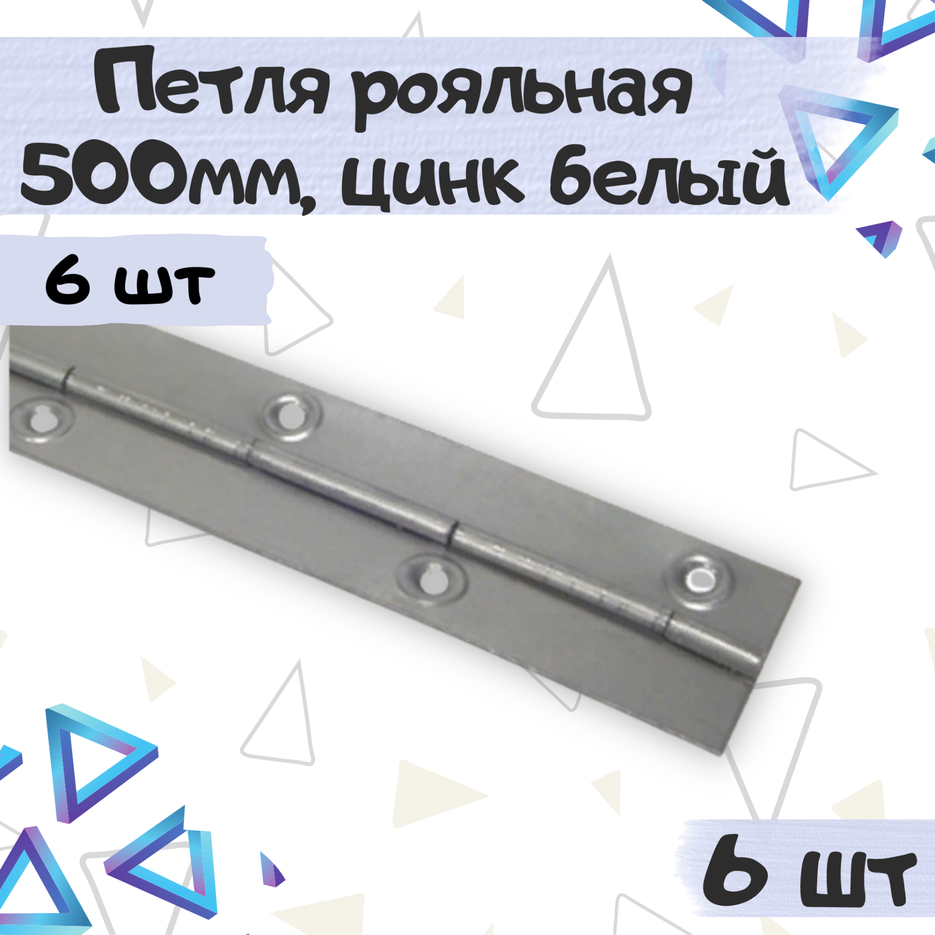 Купить Петля рояльная 500х30 мм, цвет - цинк белый, 6 штук