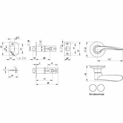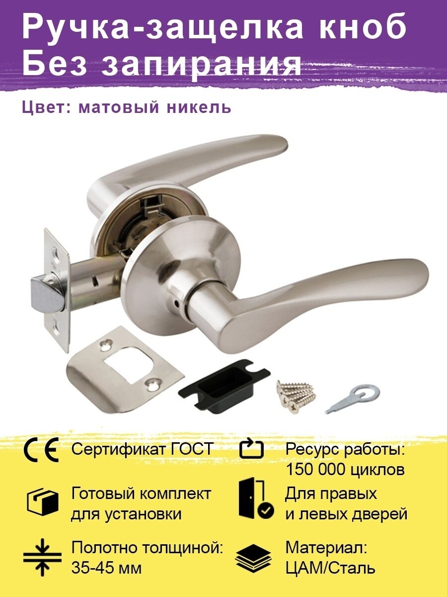 | Комплектация | защелка, ответная планка с декоративной заглушкой, дверные ручки, крепежная фурнитура, шаблон и инструкция по установке |