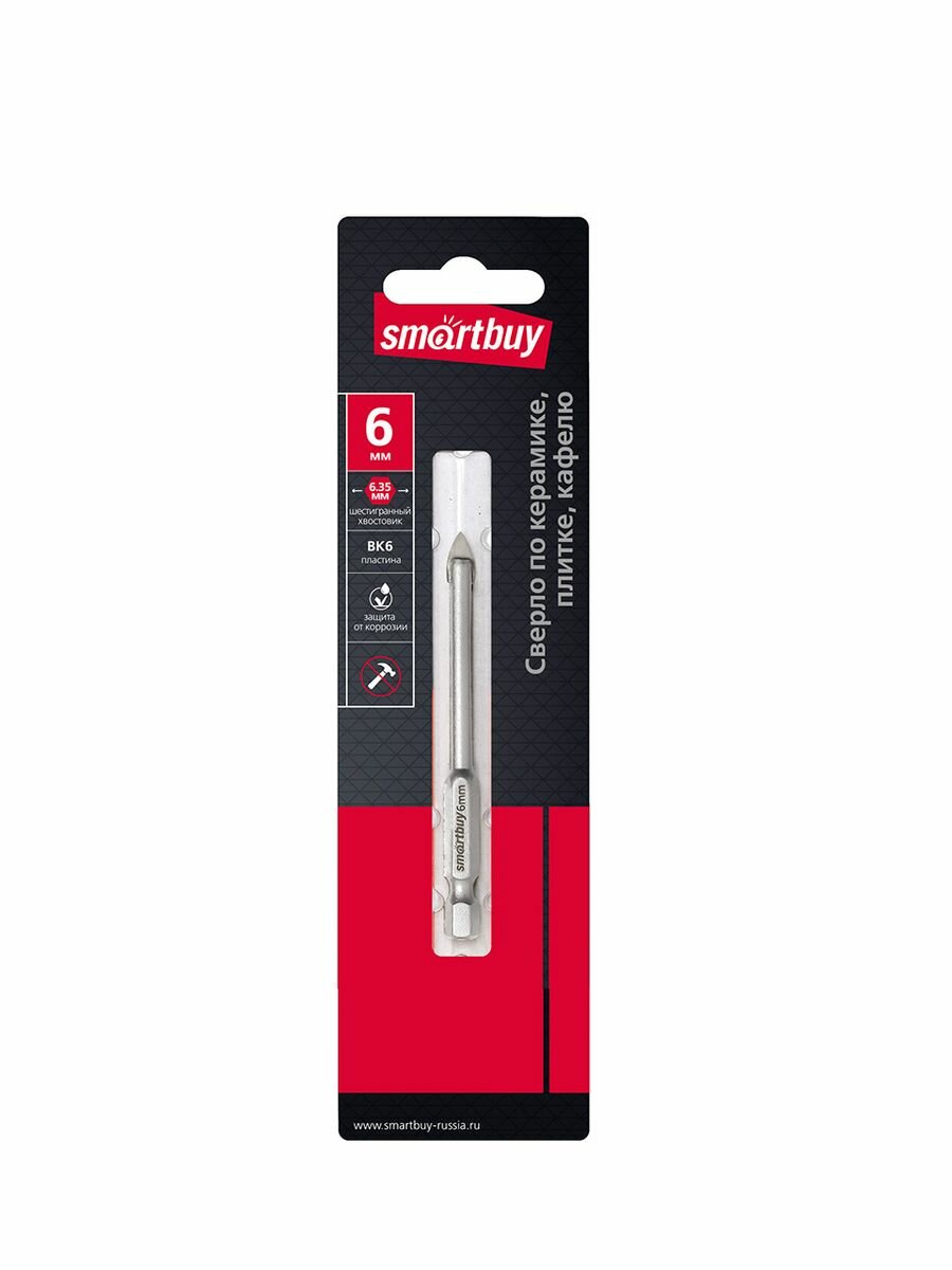 Сверло 10 мм, по кафелю, плитке, керамограниту, твердосплавный наконечник Smartbuy SBT-DC-10
