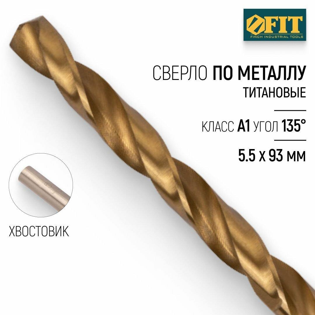 Сверло по металлу FIT HSS 6, 5 мм, титановое покрытие, 1 шт