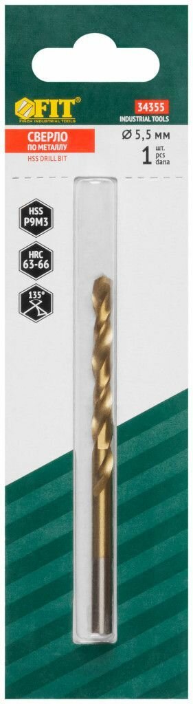 FIT IT Сверло по металлу HSS, титановое покрытие, 5.5 мм, 10 шт 34155
