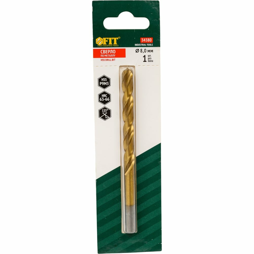 Сверло HSS по металлу, титановое покрытие, в блистере 8,0 мм (1 шт.) FIT 34380